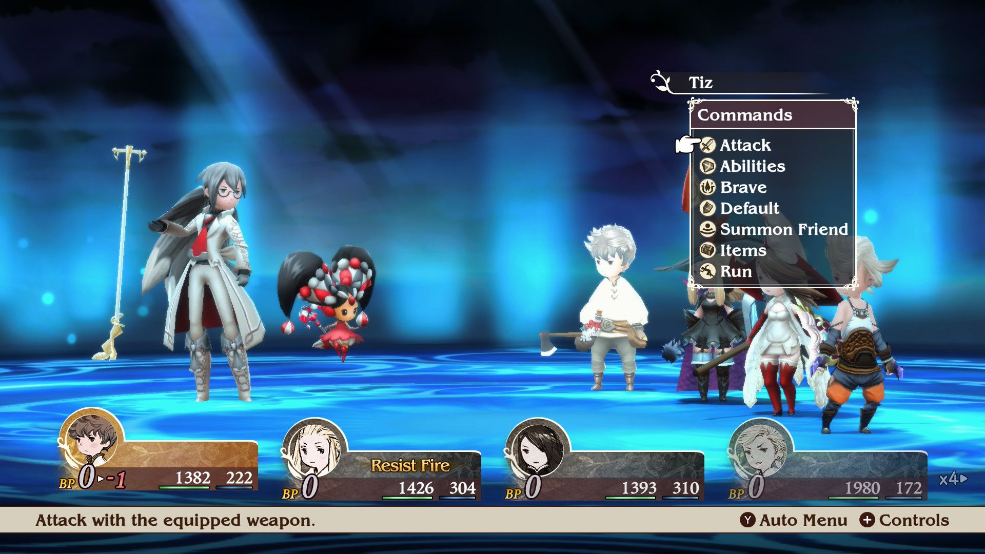 Bravely Default: Flying Fairy играется очень похоже на классическую Final Fantasy игру, хотя и не была создана с таким же большим бюджетом, как эти игры, особенно в версиях для 3DS и Switch. В игре вы управляете командой из четырех персонажей, путешествуете по карте мира, исследуете подземелья и работаете над спасением элементальных кристаллов от могущественного королевства, которое хочет украсть их энергию.