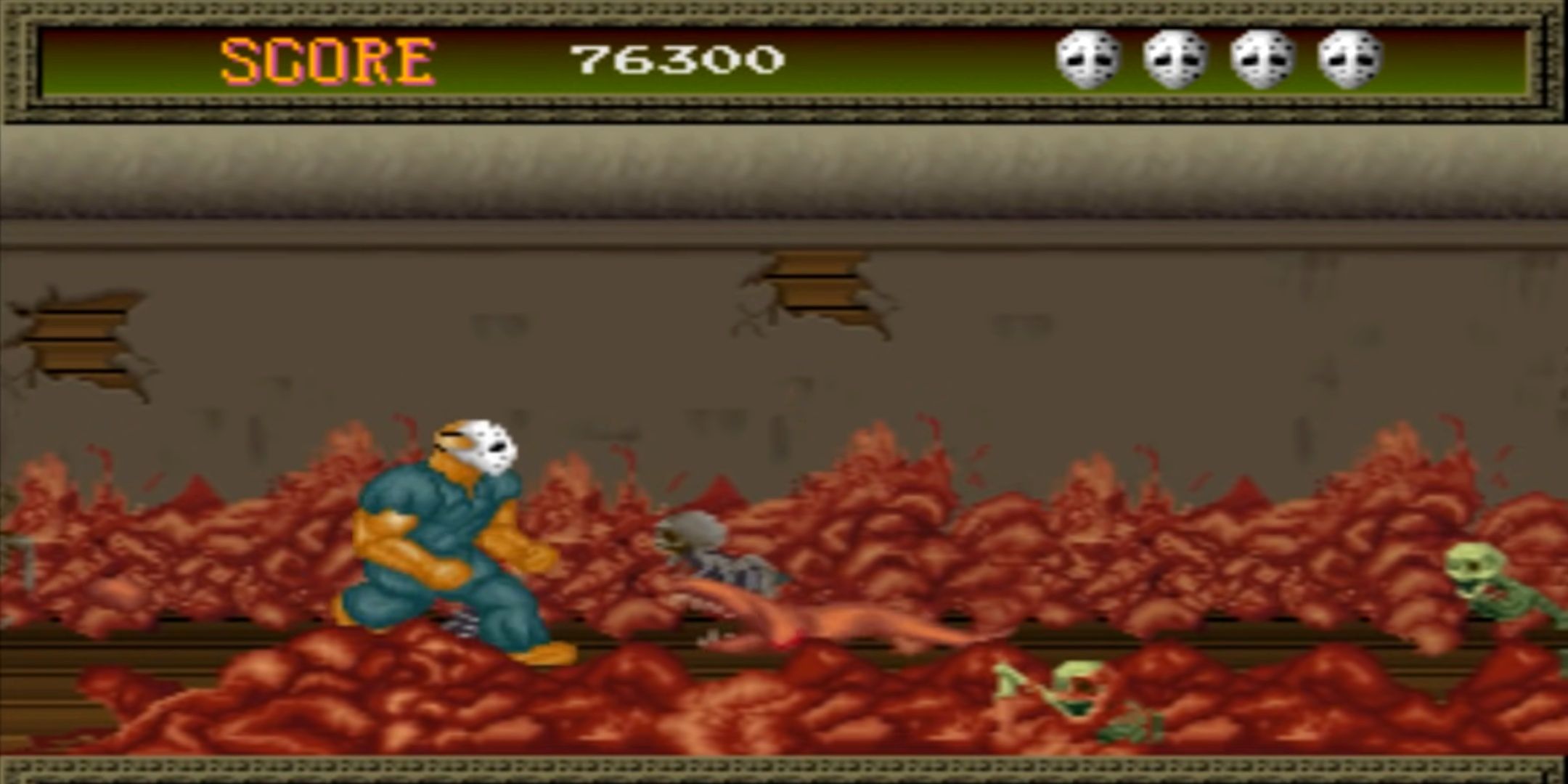 - Splatterhouse представляет собой классические слэшеры 80-х годов в формате ужасающего приключения с видом сбоку.