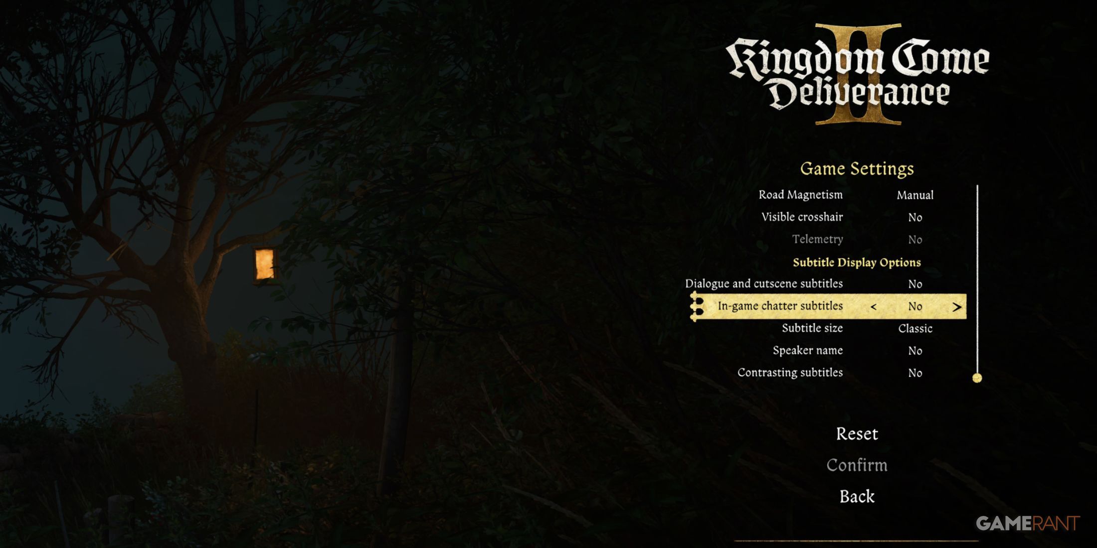 Что касается скрытия субтитров, это в первую очередь относится к «субтитрам внутриигровой болтовни», которые отображаются над NPC во время их разговоров или комментариев о Генри. Удаление текста с экрана позволяет получить более захватывающий опыт в потрясающей средневековой среде. Эти настройки можно изменить в разделе «Настройки игры».