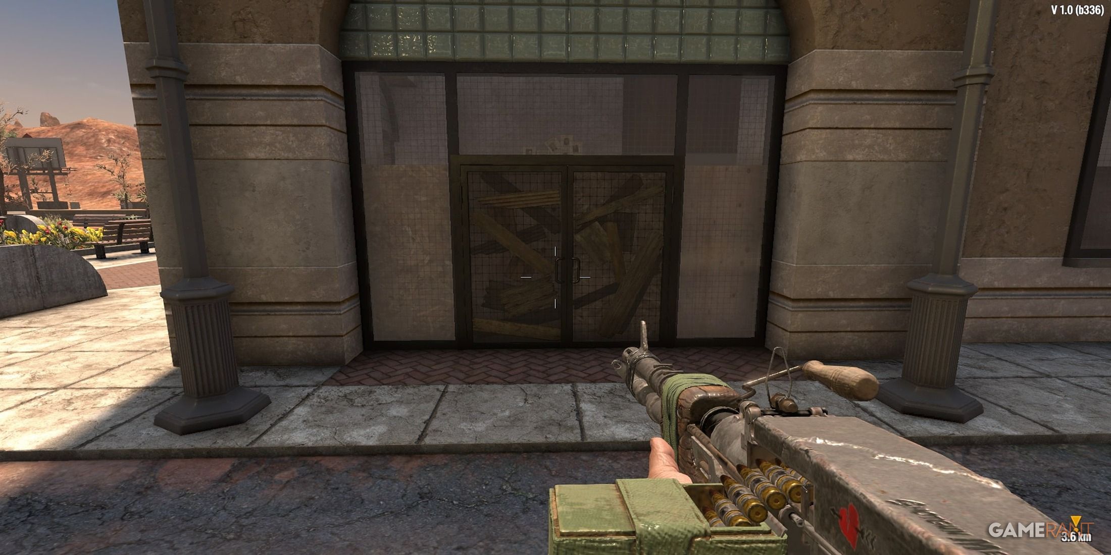 Возможно, было бы полезно установить барьер на входе, например дверь, чтобы не дать случайным зомби войти и напугать игрока сзади. Поскольку довольно часто можно встретить блуждающие орды, существует большая вероятность того, что некоторые выжившие могут попытаться вторгнуться в точку интереса (POI), которую игрок в данный момент очищает.