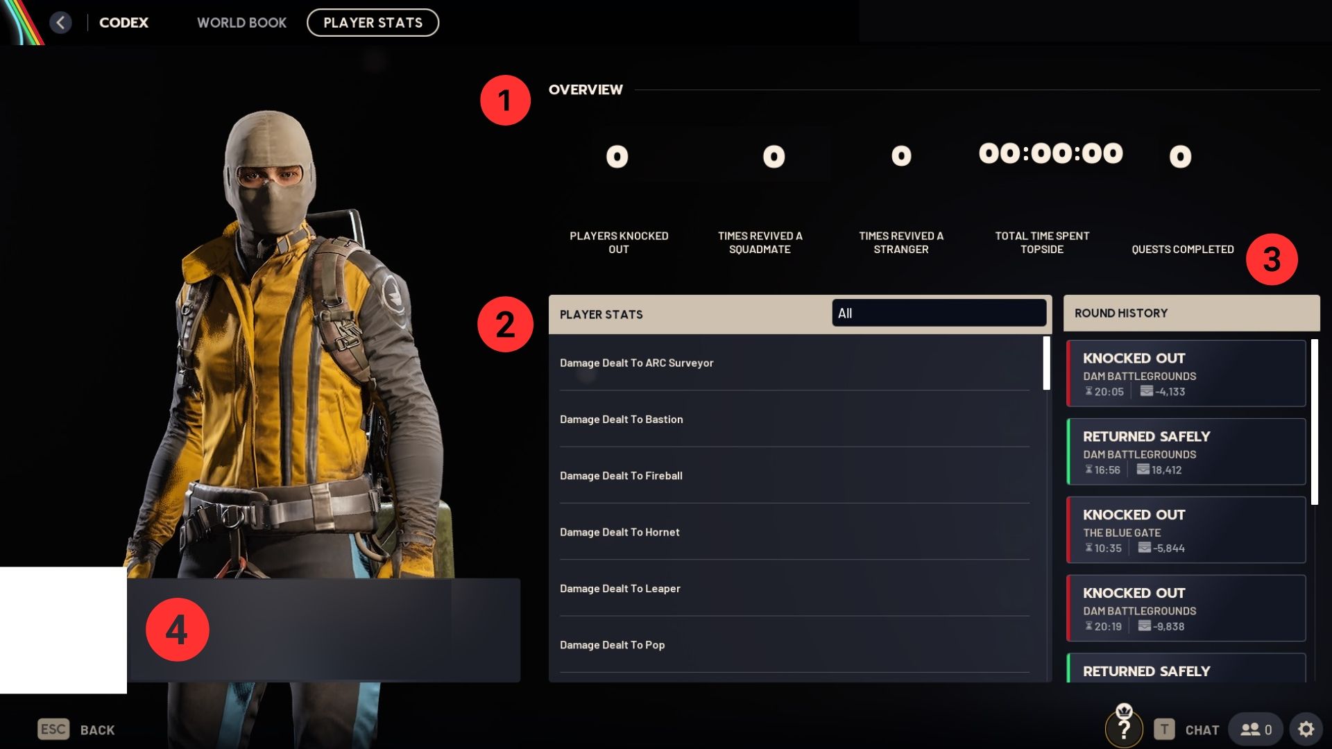 Image via Embark Studios Страница статистики в ARC Raiders разделена на четыре основных раздела: Обзор, Статистика игрока, История раундов и Рейтинг. В разделе Обзор отображаются ваши общие убийства, воскрешения, время игры и пройденные квесты. Статистика игрока предоставляет подробную информацию о нанесенном вами уроне, созданных предметах и открытых ящиках. История раундов отслеживает ваши последние матчи, включая место и время их проведения, и их ценность. Наконец, Рейтинг отображает ваше текущее звание, полученное за результаты в испытаниях ARC Raiders.
