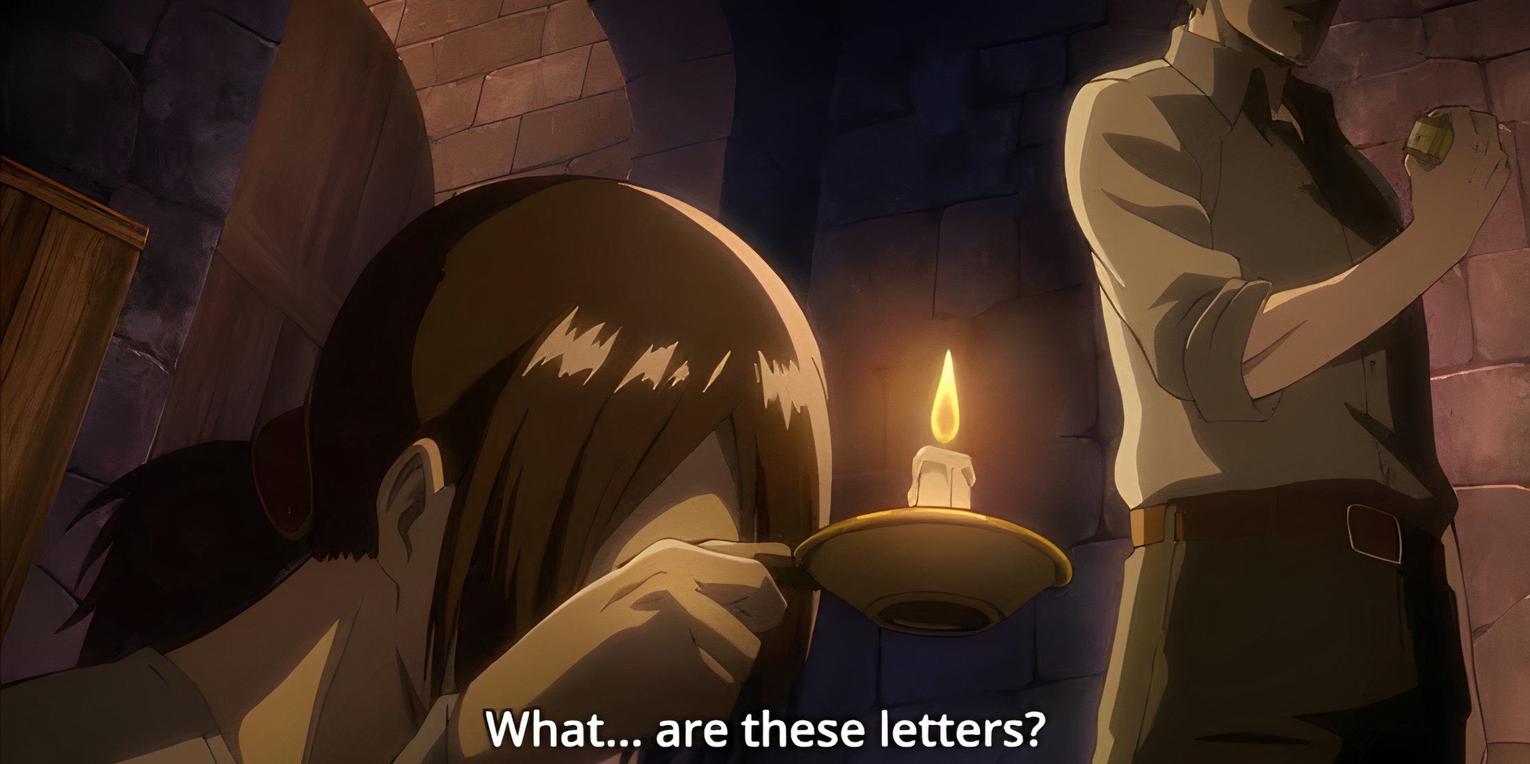 В разрушенном замке Имир признает банку с селедкой безопасной для употребления в пищу, расшифровывая на ней марлианский шрифт. Это удивляет Райнера, заставляя его подозревать, что Имир также может иметь связи с внешним миром, как и он сам. Для новых зрителей это может не стать большим шоком; однако это тонко показывает, что прошлое Имира как Титана в Марли может объяснить ее будущий союз с Воинами Титанов.