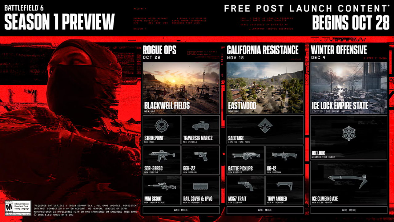 Контент первого сезона будет разворачиваться поэтапно, с акцентом на три основные сюжетные линии: Rogue Ops, Калифорнийское Сопротивление и Зимнее наступление.
