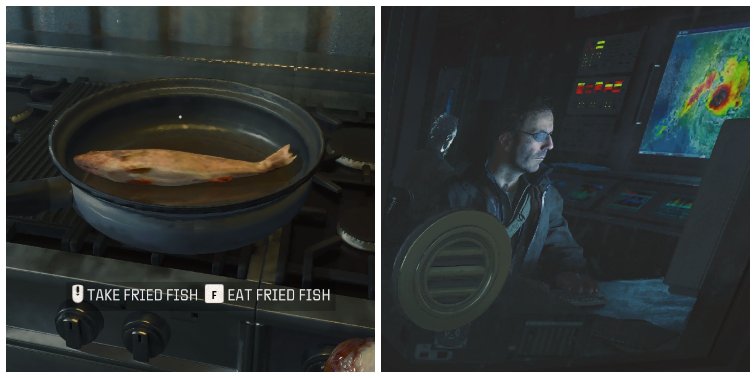 Во-первых, идите в столовую и найдите контейнер с растительным маслом, расположенный справа от печей. Вам нужно будет собрать это, используя кнопку взаимодействия. Затем, если вы стоите лицом к плитам, используйте функцию взаимодействия с пустой сковородой слева, чтобы наполнить ее маслом для жарки, а затем еще раз поместите рыбу в сковороду. Как только это будет сделано, переходите к следующему этапу. После раунда игроки могут снова посетить рыбу, где у них есть два варианта: