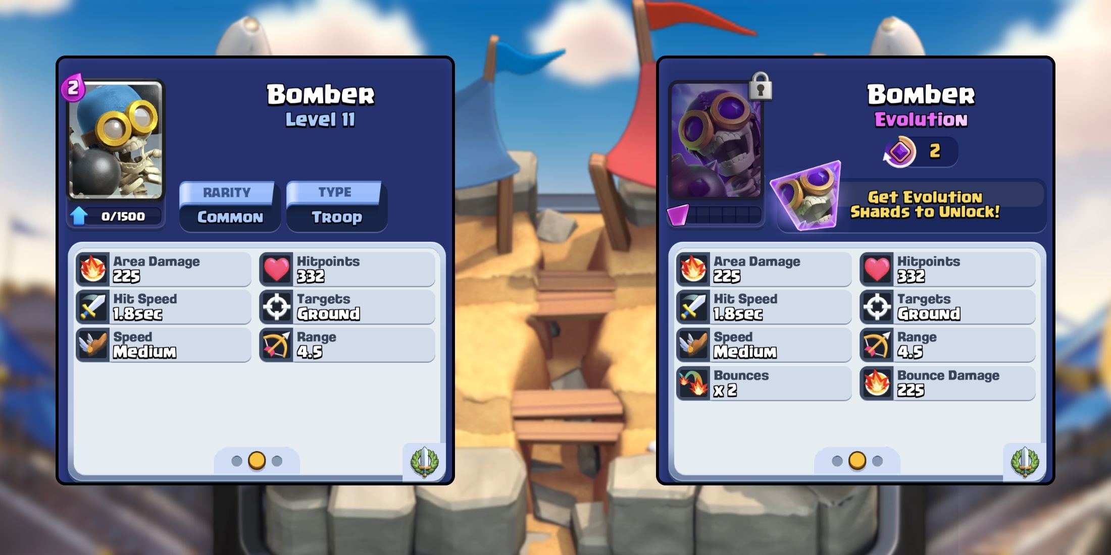 Изначально Бомбер был одной из 23 карт, включенных в Clash Royale, и до сих пор считается многими игроками неприятной картой. Даже без введения каких-либо эволюций эта карта сохраняла достойную частоту использования в игровой динамике. Однако после получения эволюции её эффективность резко возросла.