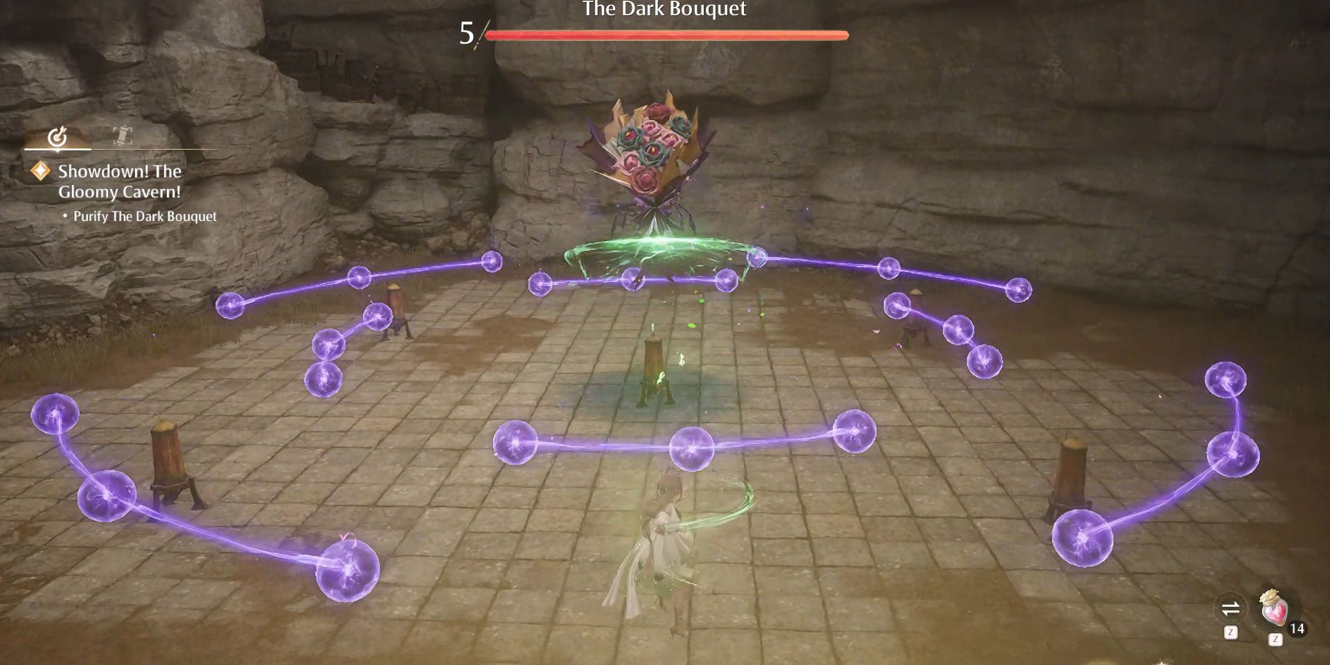 - Когда Dark Bouquet ошеломлен фейерверком, это ваш шанс использовать свой Очищающая атака на нем.