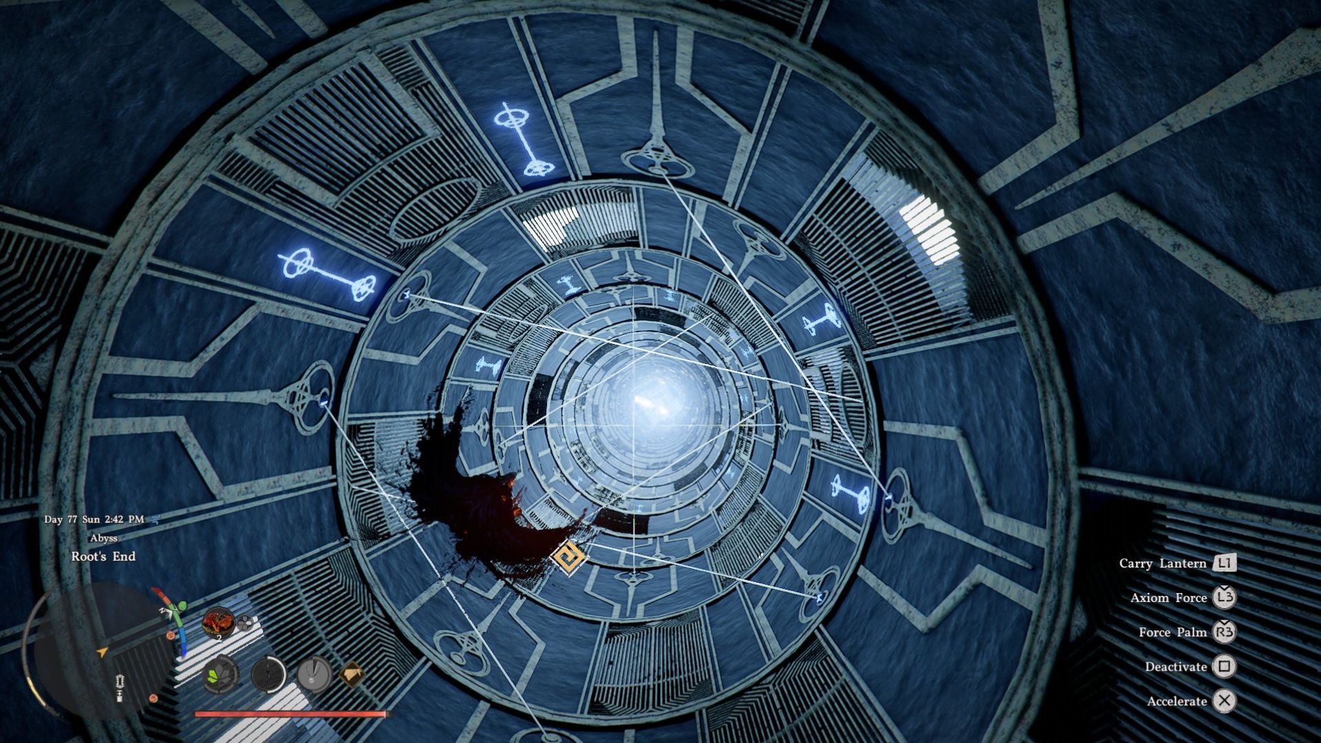 Root’s End кажется простым на первый взгляд, особенно по сравнению с другими испытаниями Abyss. Но сама головоломка на самом деле внутри большой структуры, на которой вы находитесь, поэтому ваша цель — понять, как попасть внутрь.