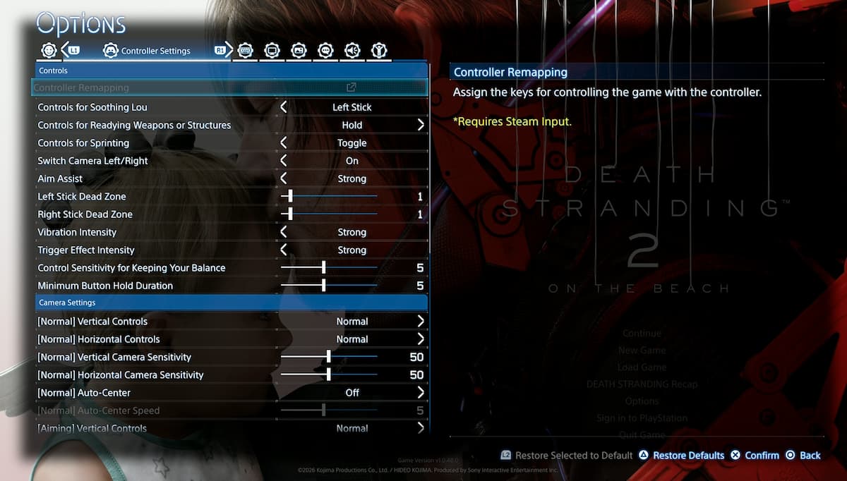 Можно ли переназначить управление в Death Stranding 2 на ПК?