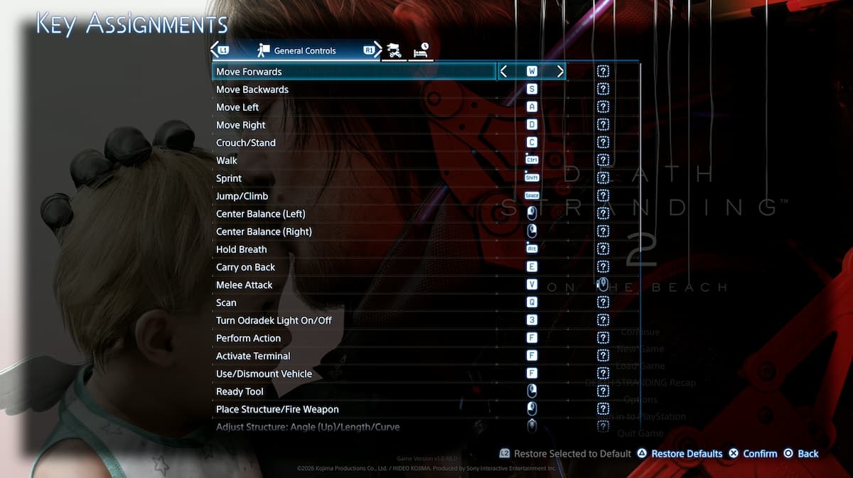 Вы можете переназначить управление клавиатурой и мышью в Death Stranding 2 из специального раздела переназначения.