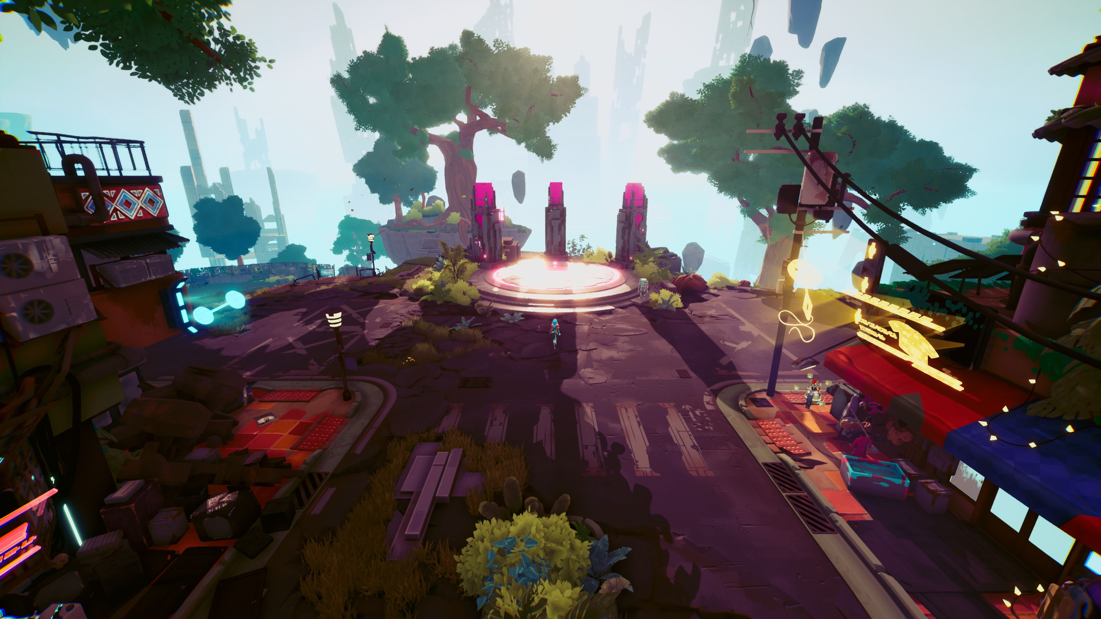 Помимо пешего перемещения по различным регионам, у игроков также есть ховерборд для быстрого перемещения по различным ландшафтам и планер для безопасного спуска после исследования особенностей вертикального ландшафта в каждом мире. Хотя в Hyper Light Breaker центральное место занимает действие, Heart Machine осознает, что игроки захотят исследовать созданную ими эстетически приятную среду, и поэтому предоставляет для этого широкие возможности и средства.