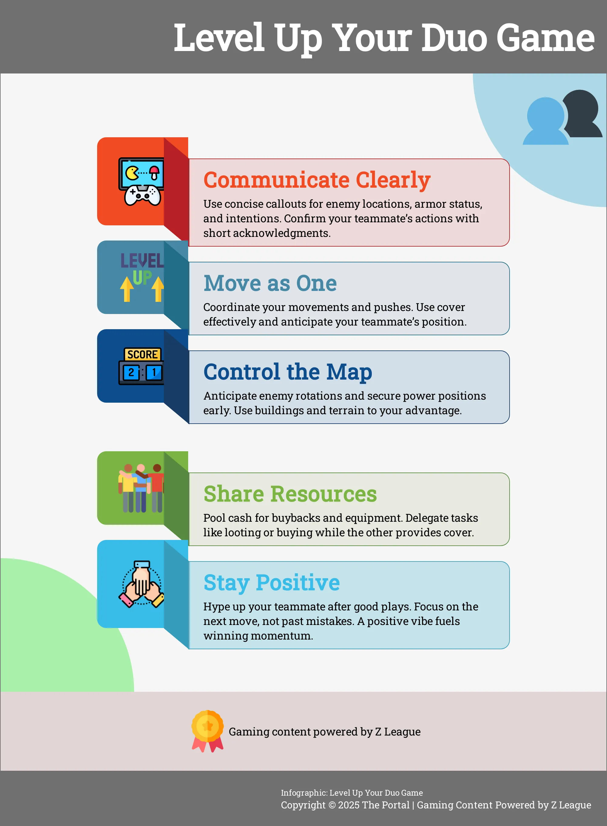 Овладение такой степенью сотрудничества не ограничивается профессионалами; это талант, который вы и ваш партнер можете развить посредством практики. Успешная коммуникация выходит за рамки простого выявления противников; она включает в себя выражение ваших намерений, подтверждение действий вашего товарища по команде и поддержание гармоничного ритма. Включив некоторые из их основных коммуникационных стратегий, вы можете постепенно превратить разочаровывающие поражения в достойные победы. Процесс начинается с обеспечения того, чтобы вы и ваш партнер постоянно были на одной волне, готовые инстинктивно поддержать друг друга.