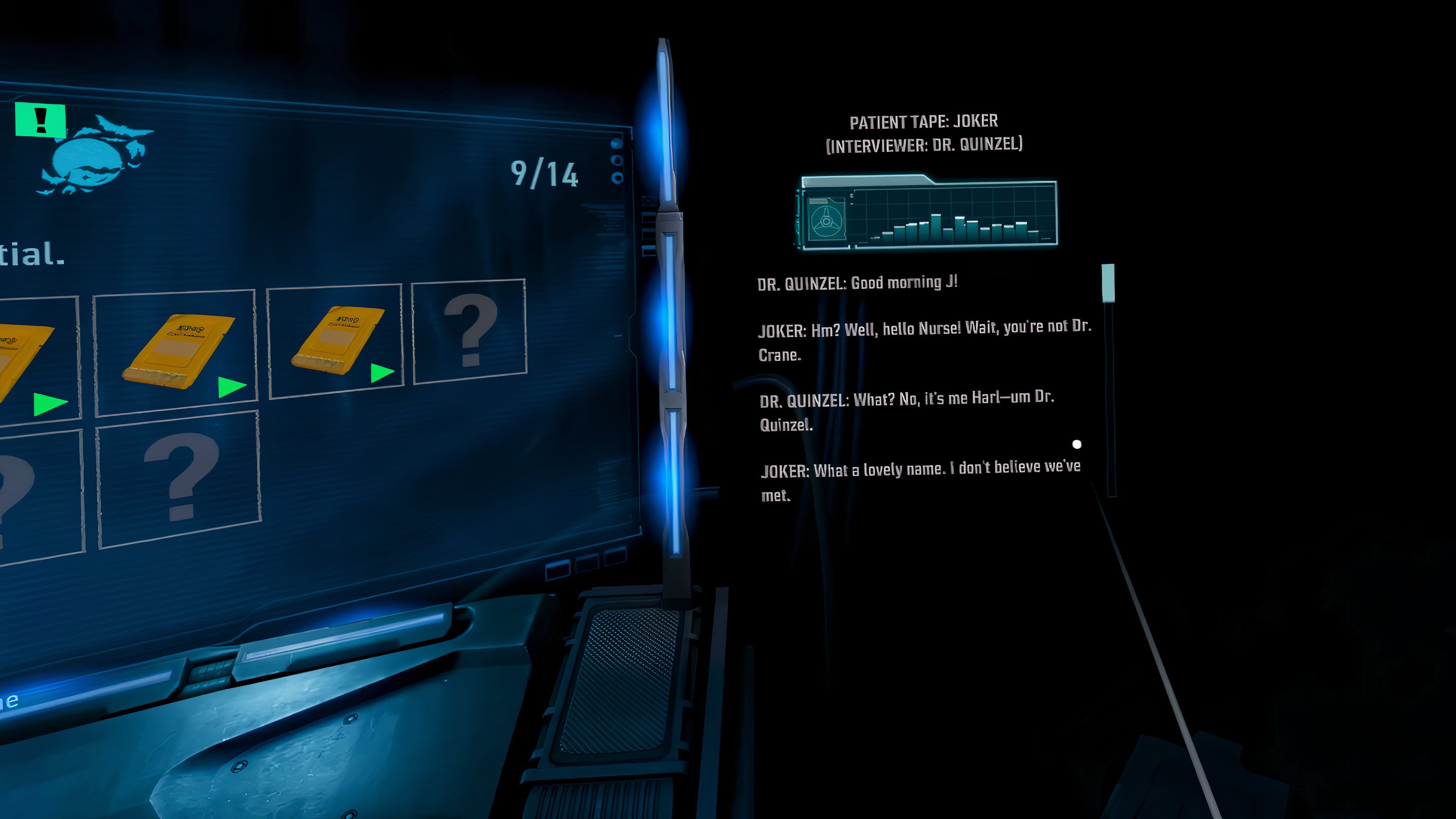 В «Тени» Джокер не изображен визуально, но слышен через стену вместе с предметами коллекционирования, телефонным сообщением и записью сеанса терапии с доктором Харлин Квинзель. Таким образом, игра не преувеличивает и не игнорирует его присутствие, когда это необходимо. Умно, что его можно услышать из одиночной камеры – именно там, где можно было ожидать содержания Джокера после подстрекательства к трем беспорядкам в Блэкгейте за последние шесть месяцев.