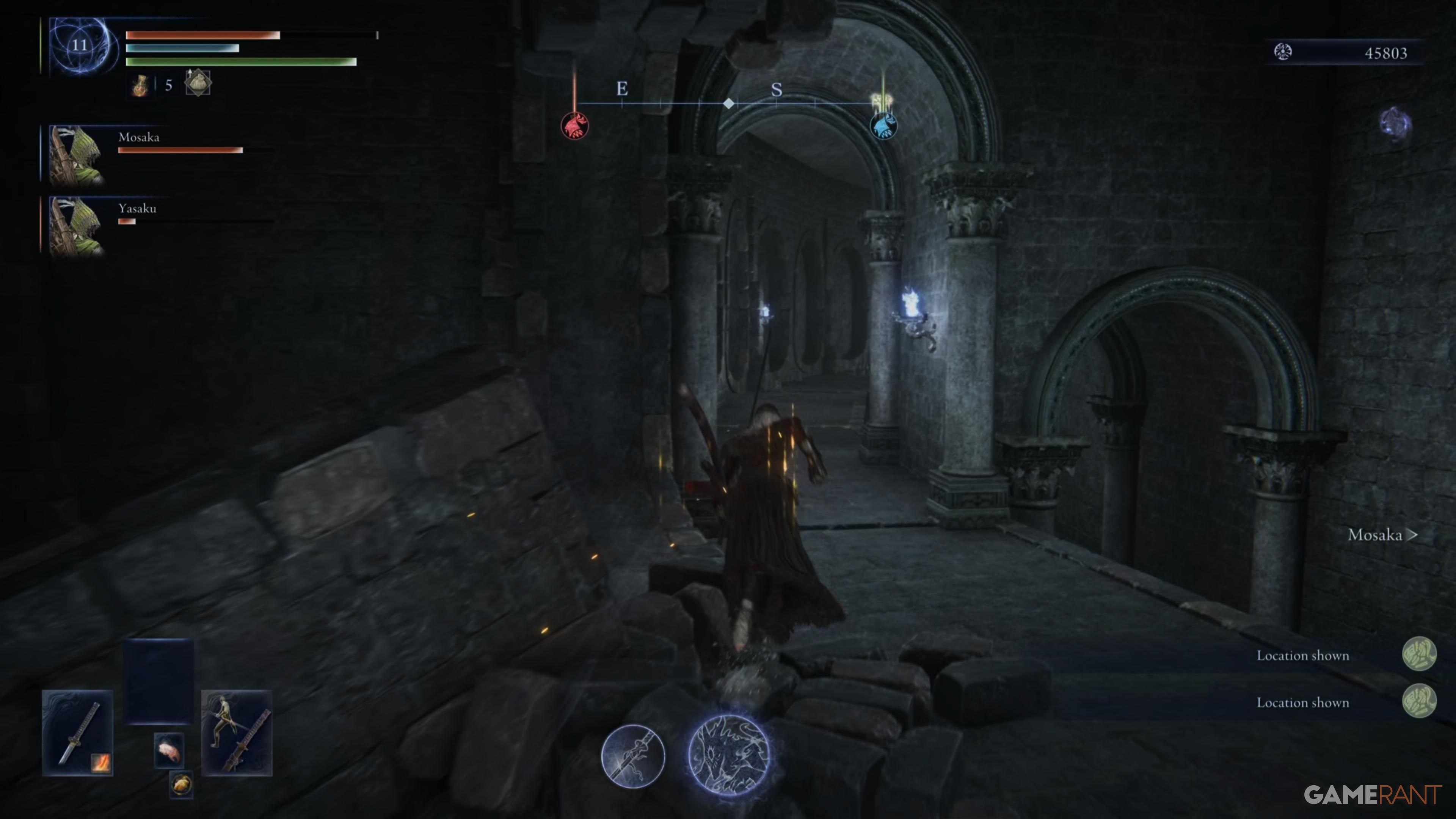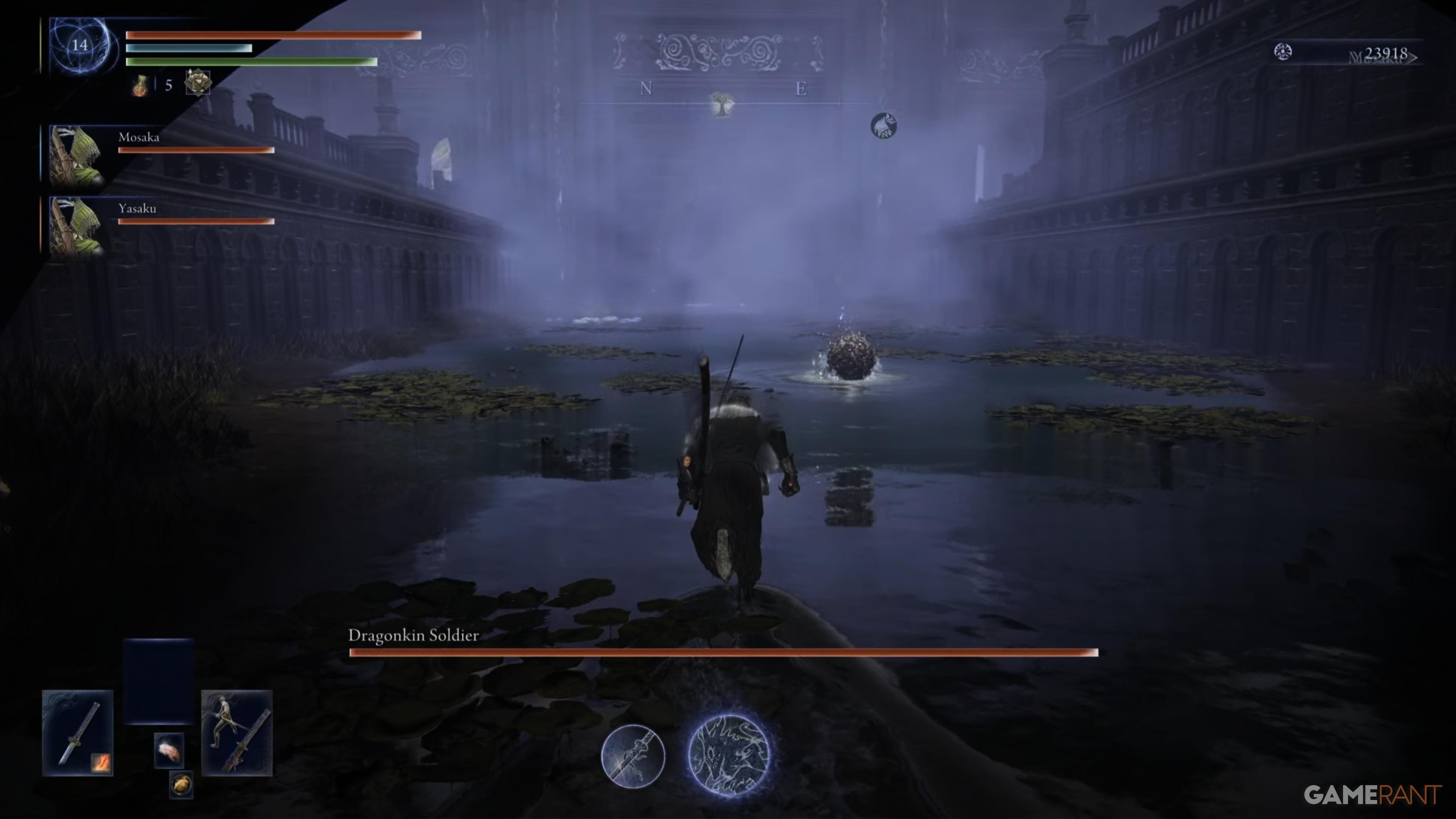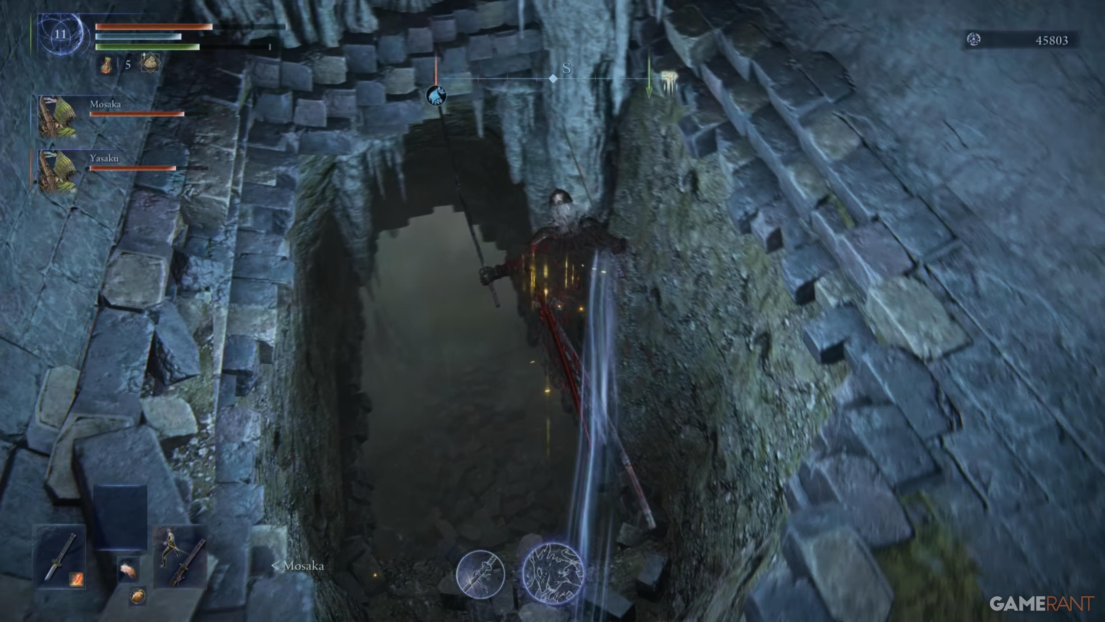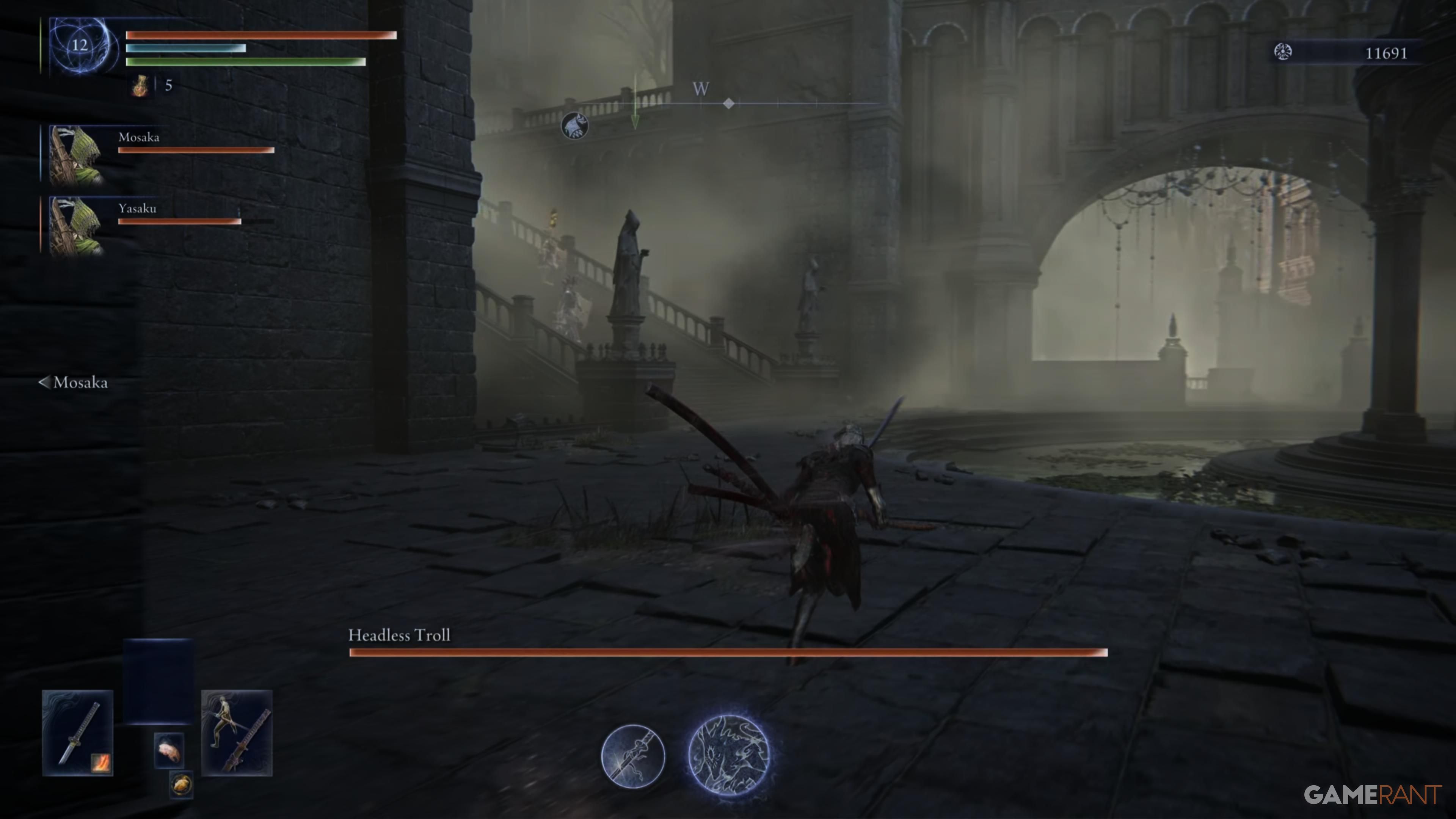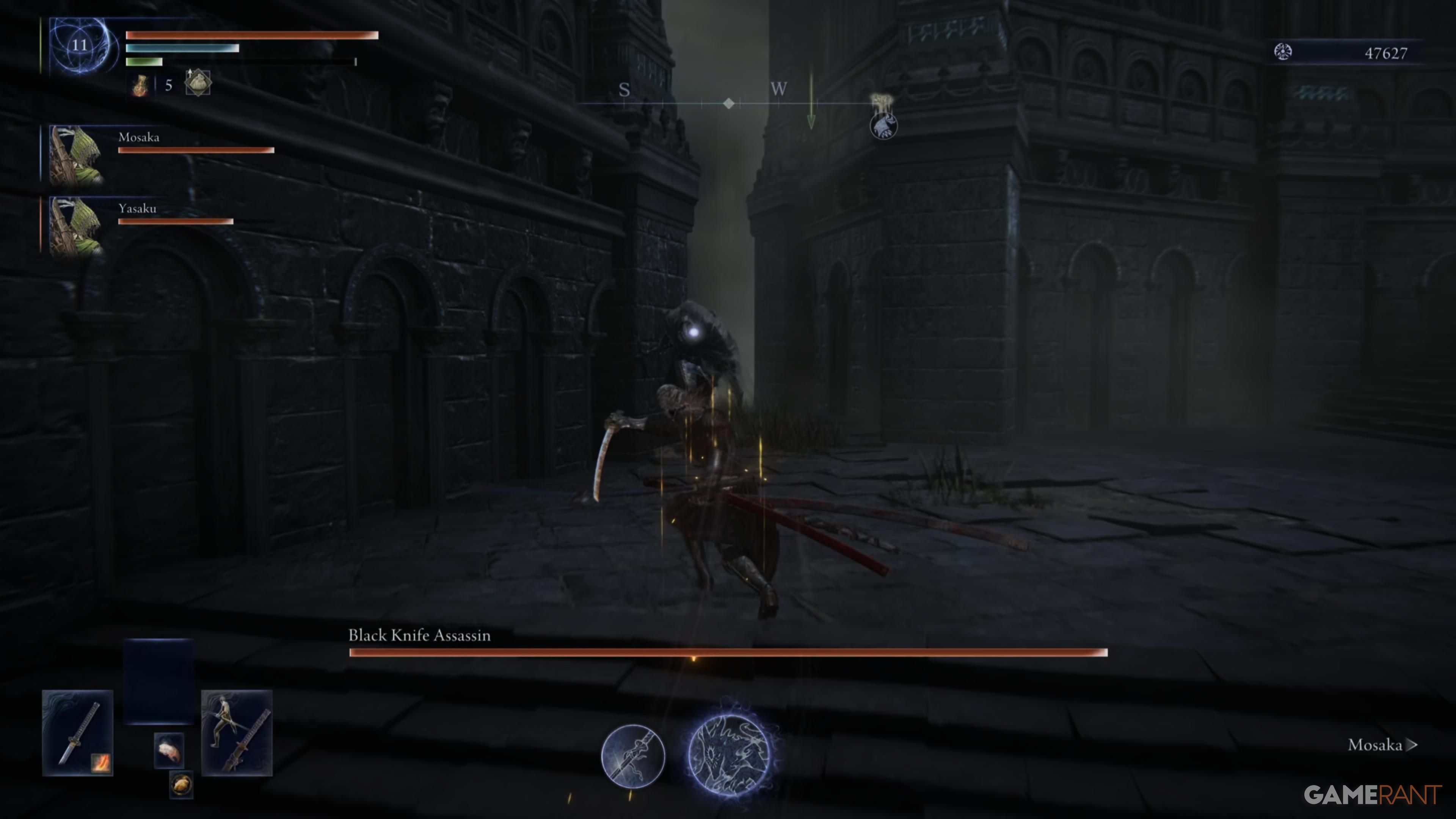Пройдите мимо Василисков до конца тропы, затем поверните налево. Продолжайте идти прямо, держась на верхней части пути до тех пор, пока не достигнете тупика и вам придется повернуть направо. Там вы найдете источник духов, ведущий к месту Благодати выше. Поднимитесь по лестнице и сверните влево, чтобы встретить Черного Убийцу Ножей. Победите этого врага, чтобы получить скрытую силу. После победы пройдите северо-западным направлением через мост, игнорируя Безголового Тролла справа от вас.