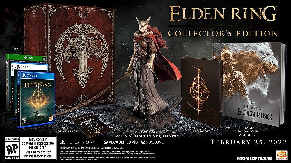 За 189,99 долларов желанное коллекционное издание «Elden Ring» с нетерпением ожидалось многочисленными энтузиастами, охваченными ажиотажем, предшествовавшим его выпуску. Коллекционное издание Elden Ring поставлялось со следующими компонентами: