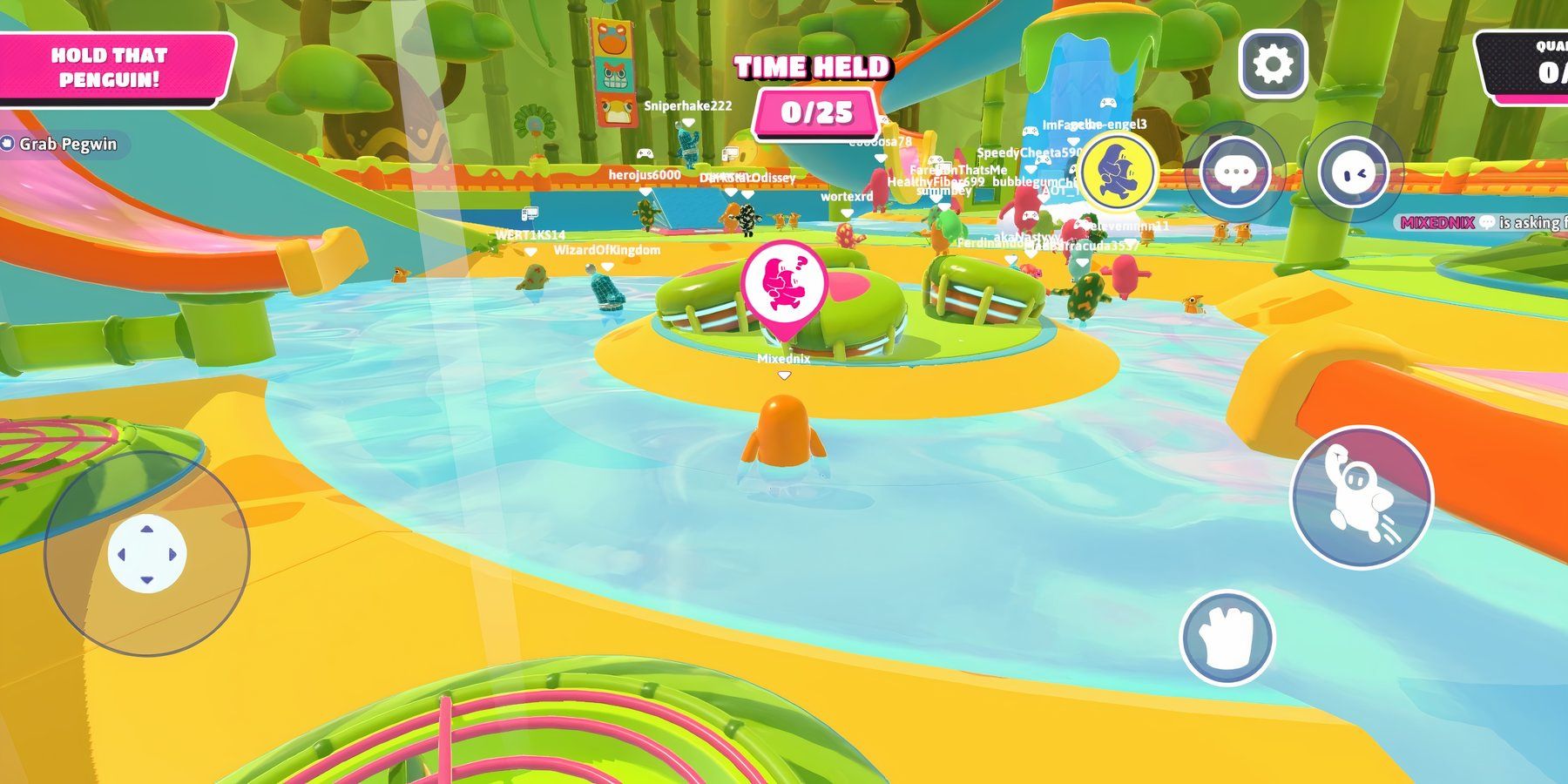 В Fall Guys есть забавный социальный аспект под названием «командный перенос», который позволяет одному игроку забраться на спину другого. Эта функция была добавлена в обновлении Spring 2024 как часть улучшений игрового процесса. Функция командного переноса работает только тогда, когда оба игрока согласны. Вы можете поднять или быть поднятым другим игроком только после того, как он дал свое согласие на запрос.