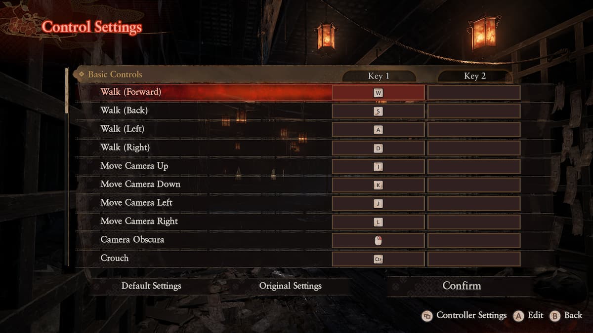 Можно ли переназначить управление в Fatal Frame II Crimson Butterfly Remake?