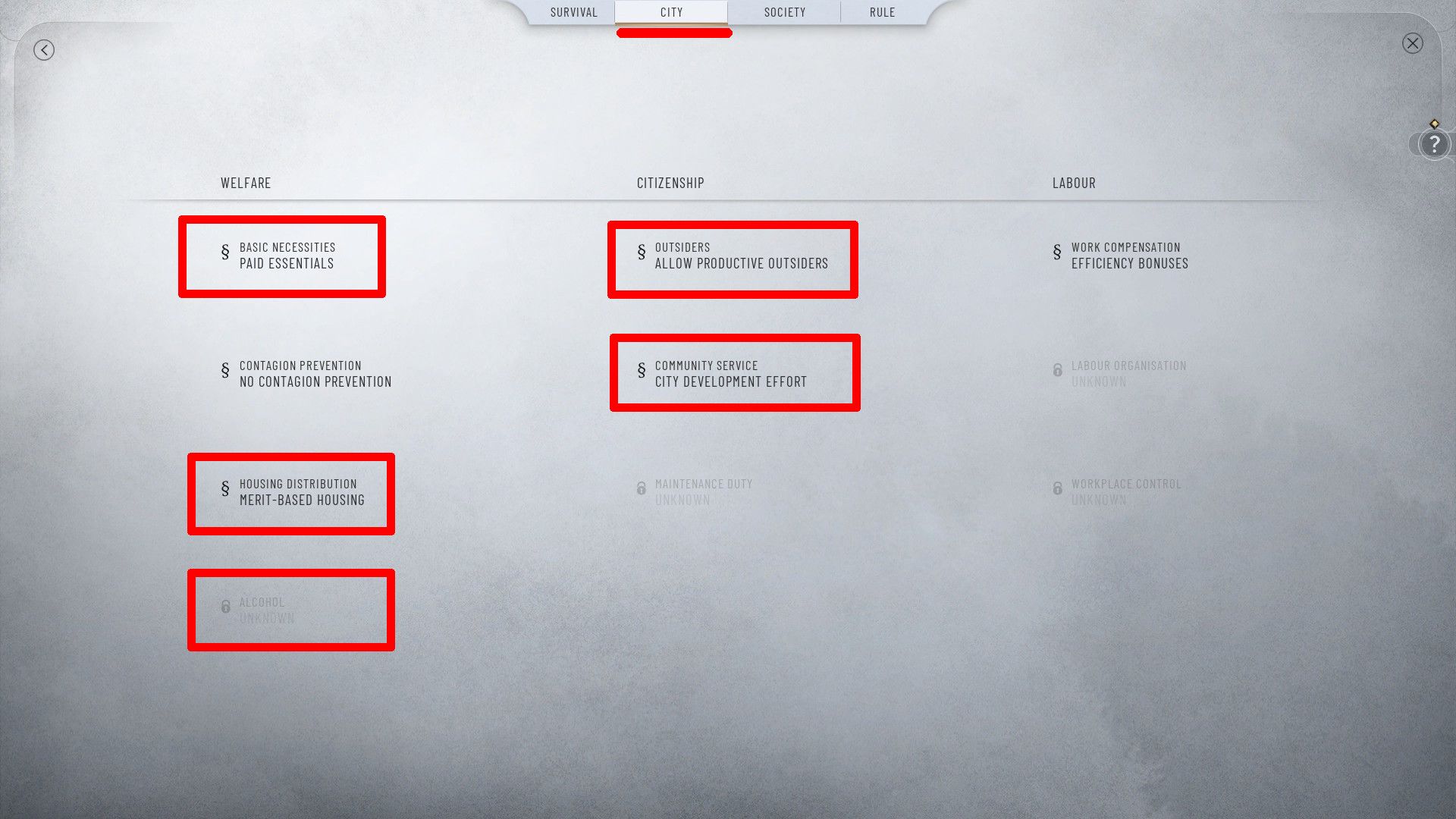 - Распределение жилья: Жилье по заслугам (Совет: Город). Доступно после исследования Распределение жилья: Жилье по заслугам (Дерево идей: Город).