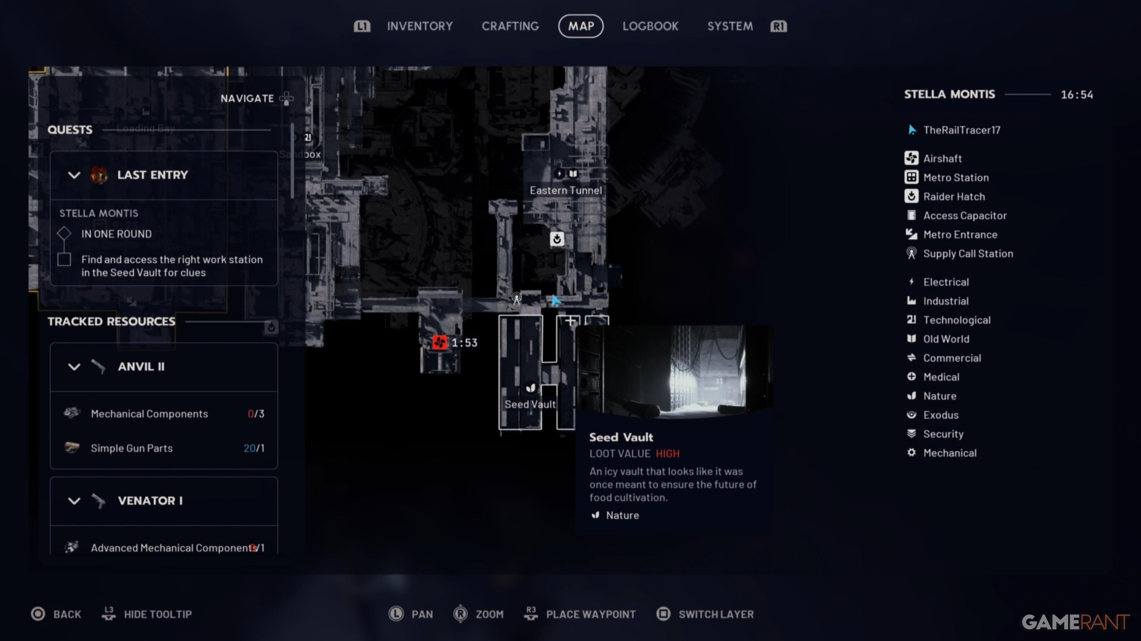 Это быстрое задание, сосредоточенное исключительно на Хранилище семян в Stella Montis. Вы начинаете с полным комплектом снаряжения и можете легко эвакуироваться, используя ближайший Воздушный шахт после выполнения целей. Если вы не появляетесь рядом с Хранилищем семян, вы можете сдаться, не потеряв своего снаряжения.