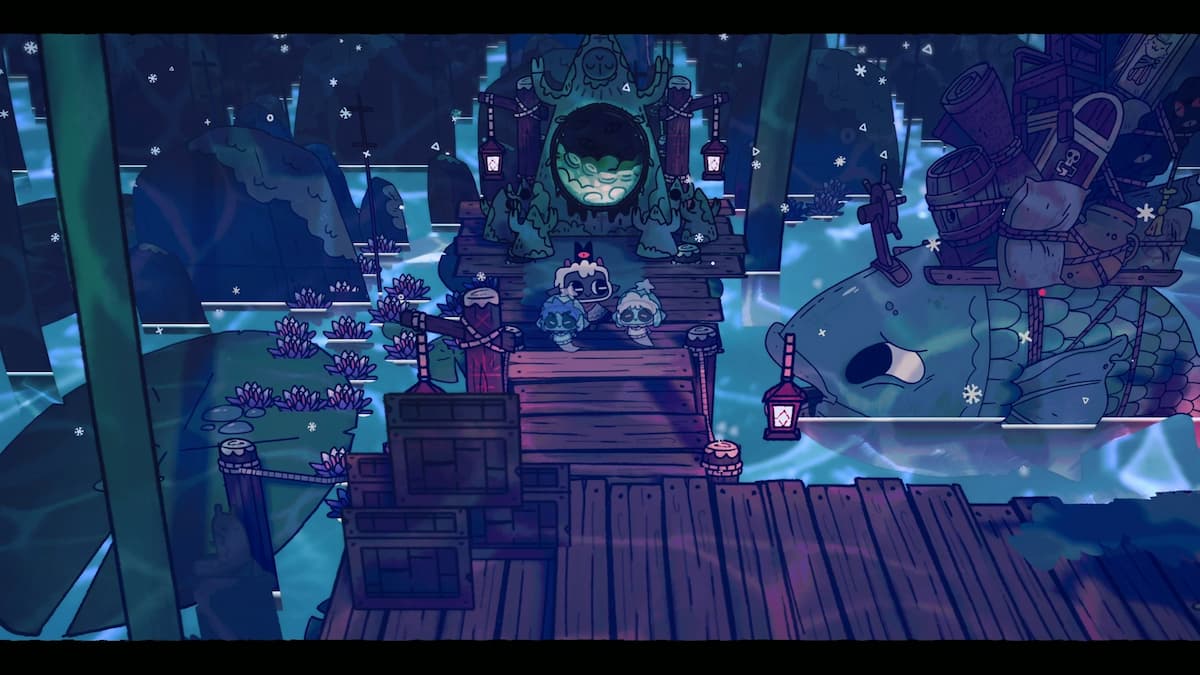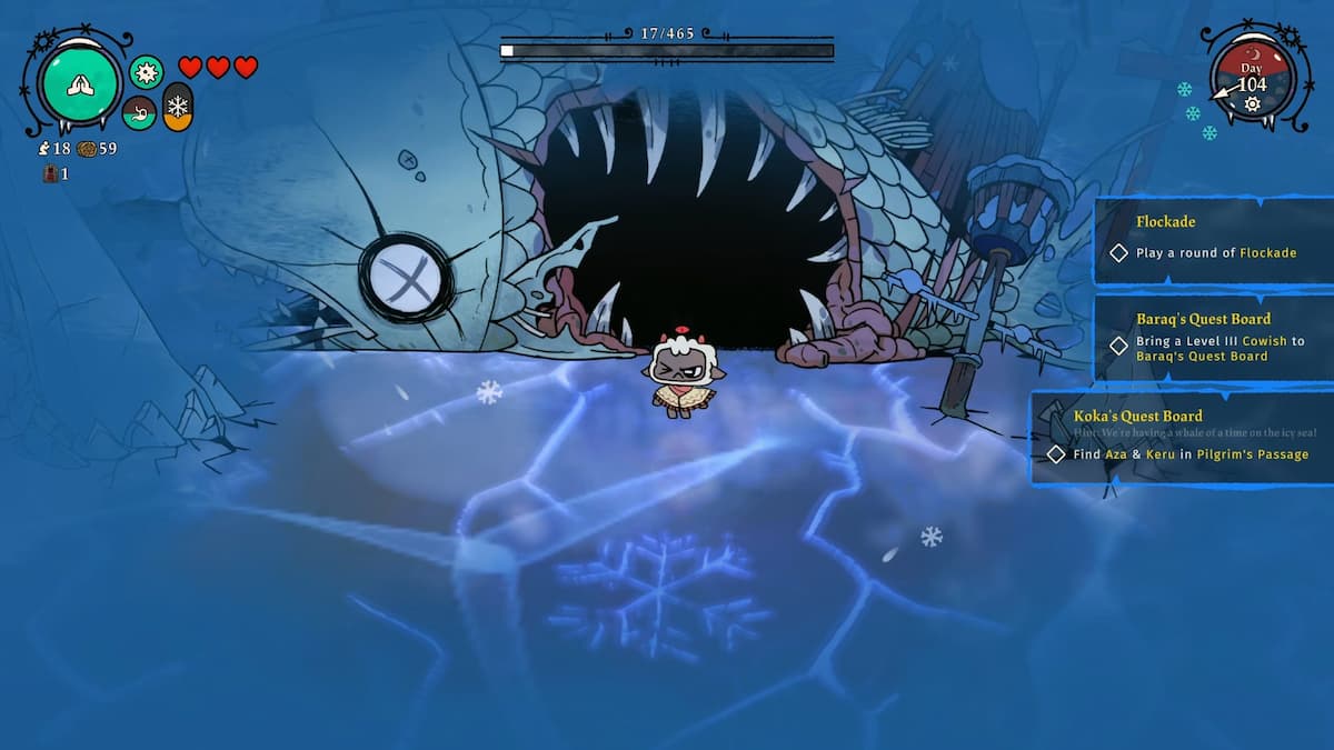 Зимой используйте телепорт, чтобы добраться до Прохода Пилигрима. Затем, начиная слева, осторожно скользите вниз по пирсу, используя ледяные блоки.
