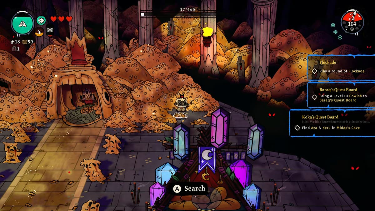 Чтобы найти последнее укрытие, отправляйтесь в пещеру Мидаса и поищите небольшую кучу золота в верхнем правом углу. Как только вы ее найдете, Аза и Керу согласятся, что спрятали достаточно.