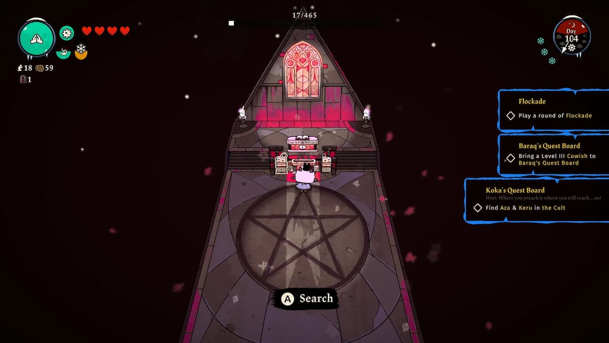 Далее отправляйтесь к базе Культа. Внутри Храма поищите небольшую статуэтку Ягнёнка слева, под Кафедрой проповедей – вы найдете их там обоих.