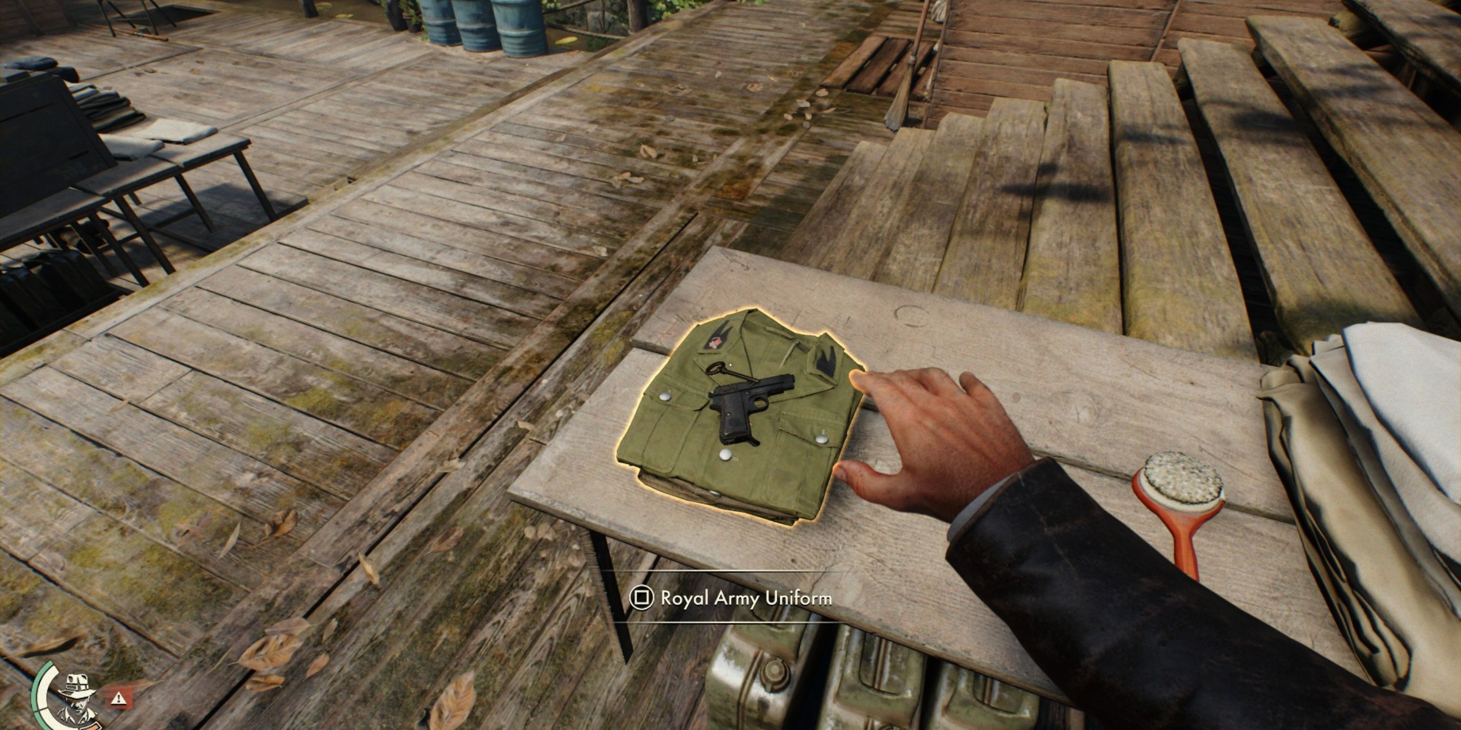 В лагере Восса искатели приключений могут обнаружить туалет, оборудованный душем под открытым небом и прачечной, а также несколько охранников, которые носят только нижнее белье. Слева от душевых стоит стол, на котором игроки найдут аккуратно сложенную униформу Королевской армии. Захватив эту форму, они получат в подарок ключ Королевской армии и модель 1934 года.