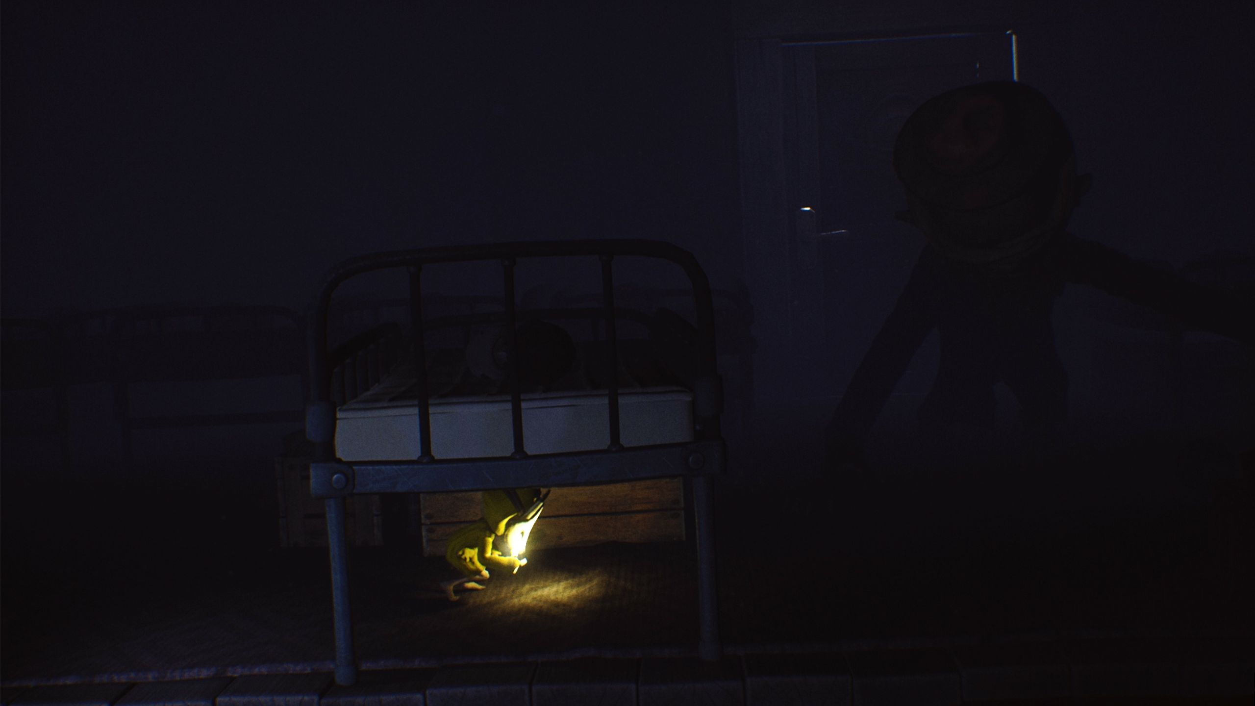 Стремительно перебегите на детскую площадку, чтобы спастись! В конце коридора наблюдательный глаз может превратить Шесть в камень, если заметит её. Вы можете либо использовать предметы, чтобы спрятаться, либо быстро обойти вокруг, оставаясь вне поля его зрения.