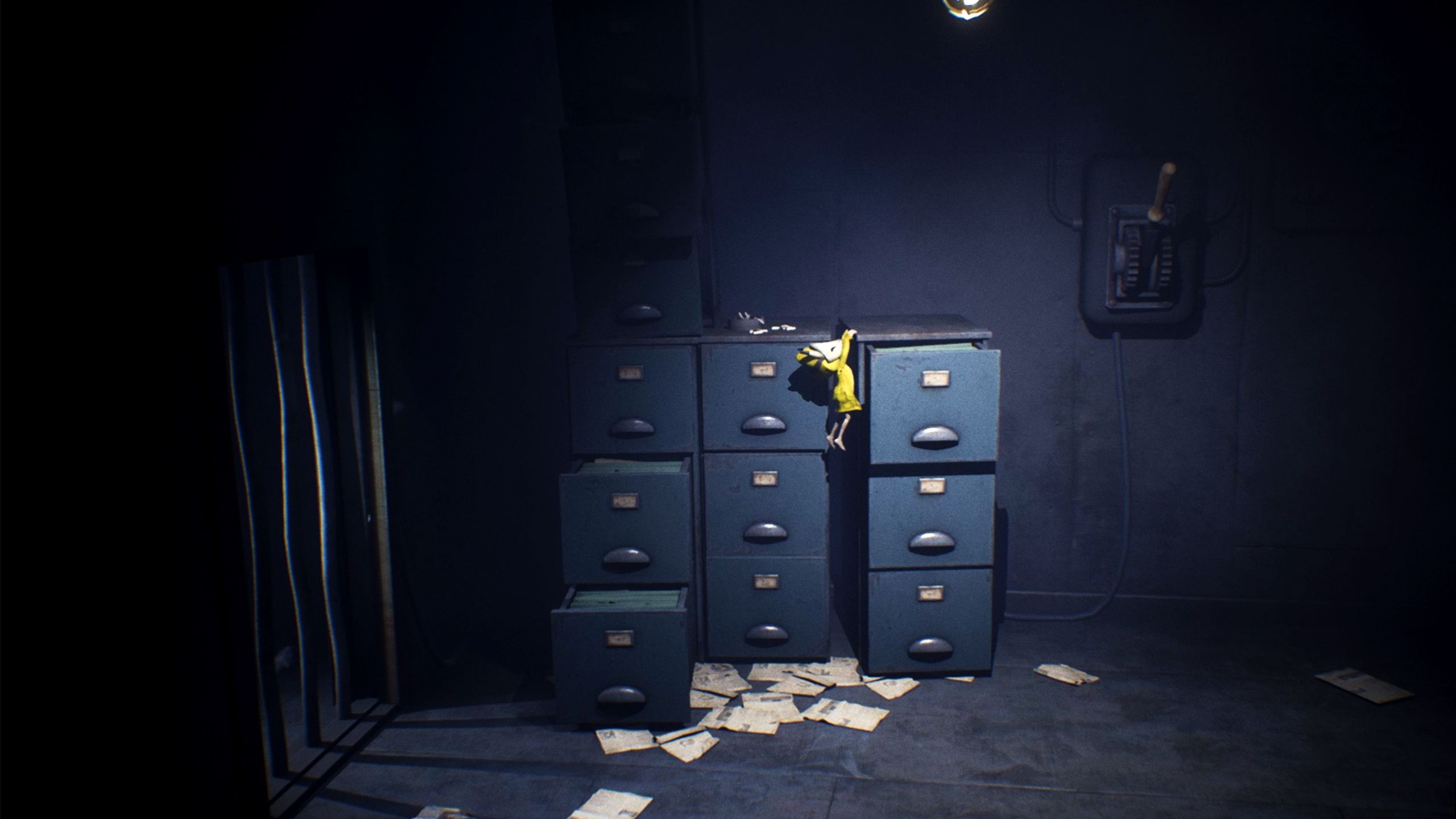 Откройте крайний левый ящик и тот, что прямо над ним. Используйте эти ящики как ступеньки, чтобы подняться выше, затем прыгните направо. Как только вы окажетесь там, потяните за рычаг, чтобы отключить всё питание.