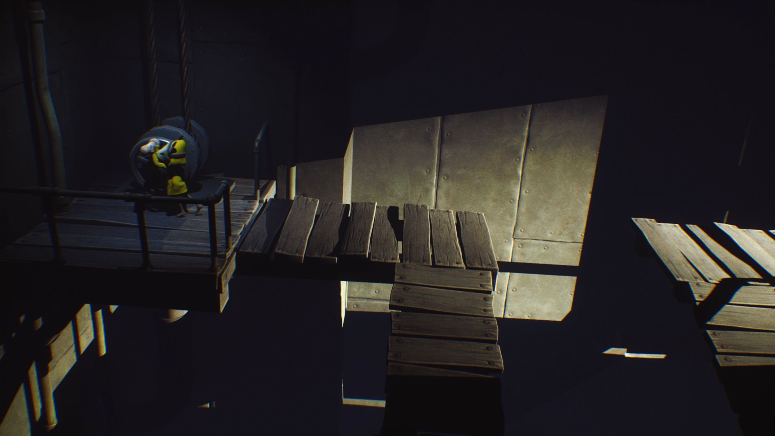 Мост начнёт закрываться, как только Six окажется на нём. Поторопитесь перейти на другую сторону и прыгните на ящик, чтобы добраться до более высокой области.