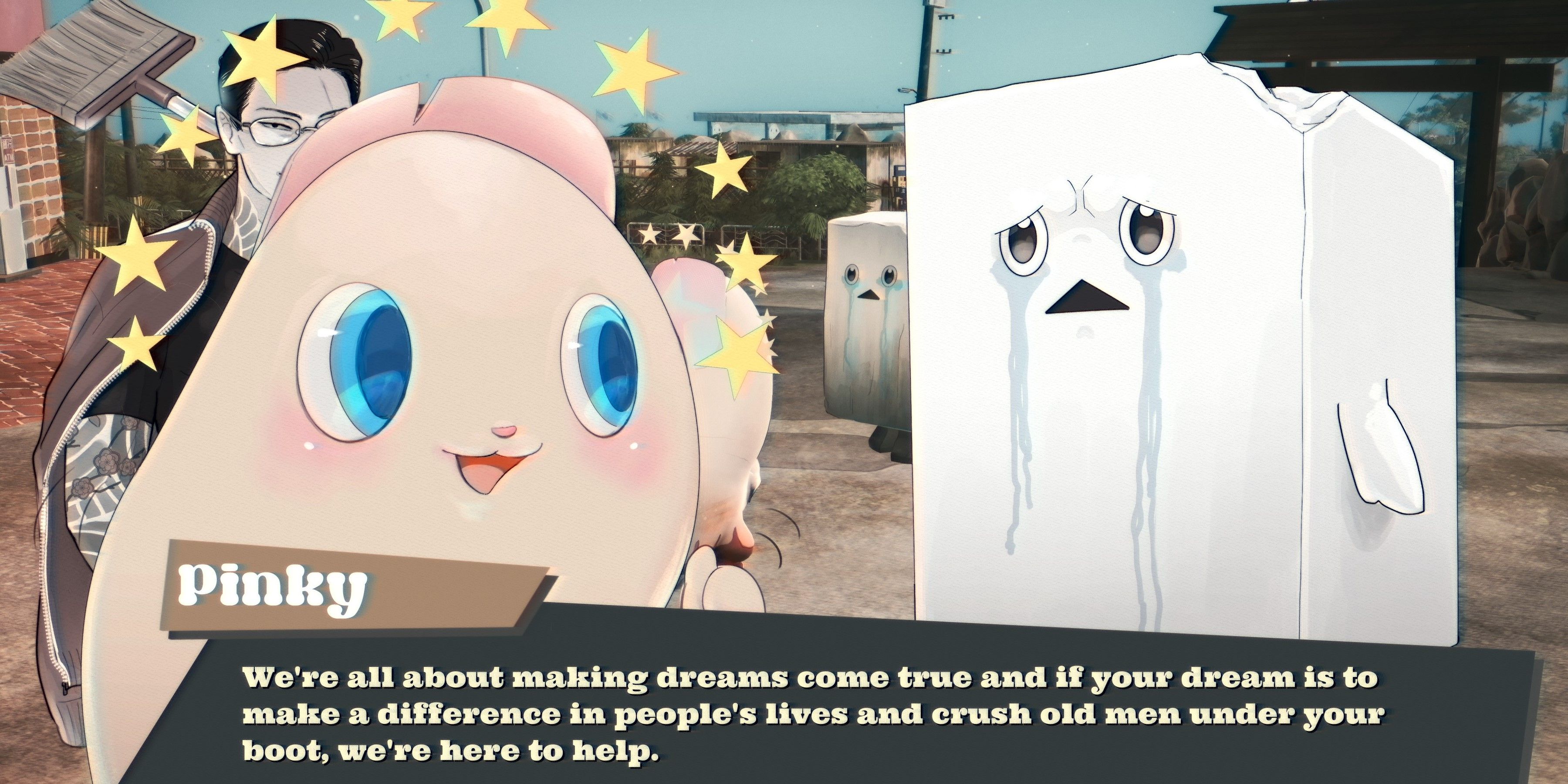 - Мичи и Пинки из агентства Promise Mascot Agency привносят в игровой мир уникальное сочетание выдержки якудза и жеманного очарования в виде динамичного дуэта, полного юмора.