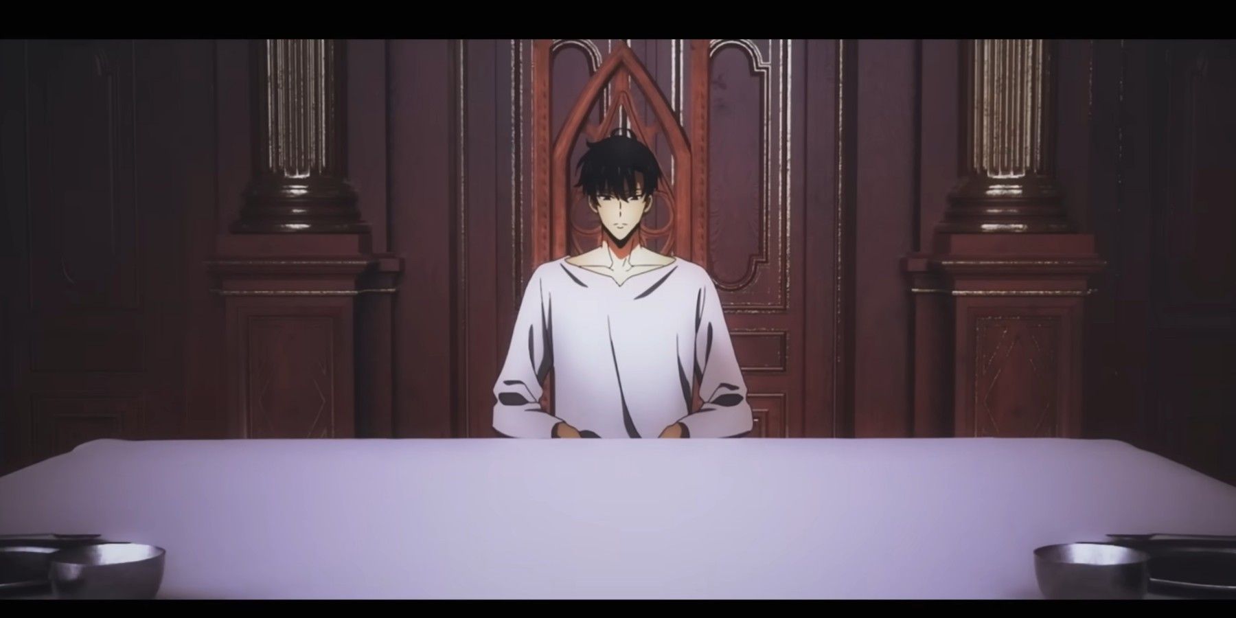 В финальных титрах 2-го сезона одиночной прокачки наблюдается поразительное сопоставление тесноты, окружающей Прошлого Джин Ву, и обширных пространств, доступных ему для размещения «ужина», символизируя жертву Джин Ву своим телом в качестве носителя силы Теневого Монарха. Это иллюстрируется сценой с разбитым бокалом перед тем, как Джин Ву из прошлого падает на стол, так же, как он это сделал на алтаре в храме Картенон. Визуальное повествование здесь изображает первоначальную уязвимость и раздражение Джин Ву как самого слабого Охотника, а Теневой Монарх показан исследующим замок и обнаруживающим себя прежнего, находящегося в отчаянии. Позже, вместо того, чтобы сидеть за столом, Теневой Монарх занимает пустой трон, символизируя свою власть и господство.