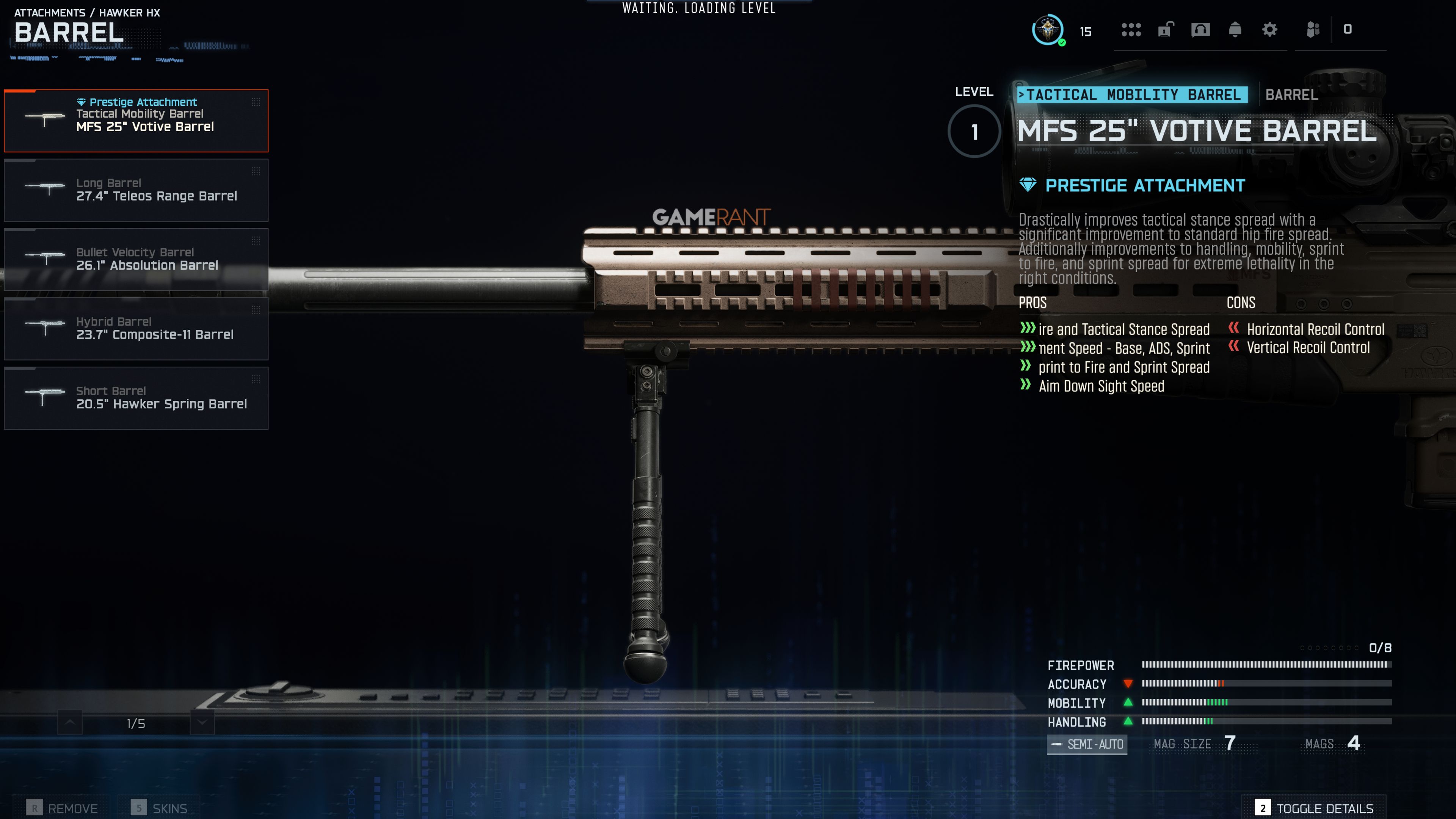 | MFS 25′ Votive Barrel | Достигните Престижа 1 оружия Hawker HX. |