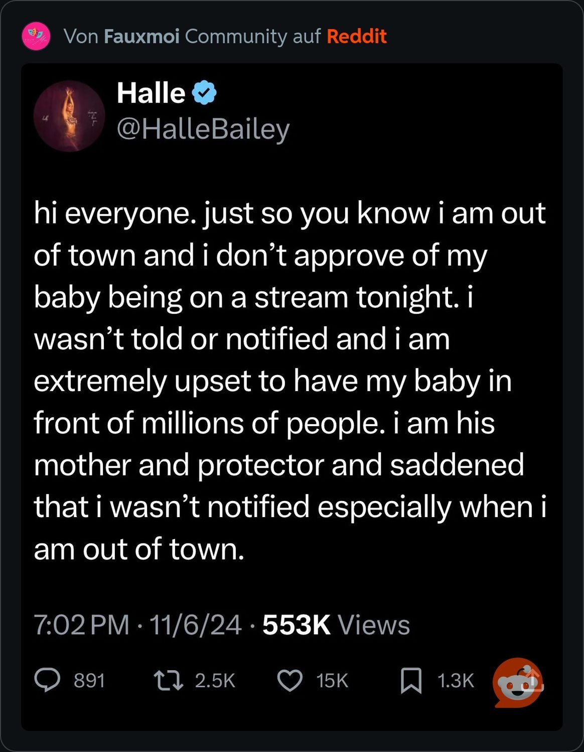 Холли Бэйли раскритиковала своего бывшего партнера ДДД за трансляцию их годовалого сына Хало на стриме Twitch без ее согласия. Во время общения со стримером Кай Синат ДДД поместил ребенка в сумку Balenciaga, которая не предназначена для младенцев, и передвигал его вокруг, что вызвало критику в сети из-за соображений безопасности.