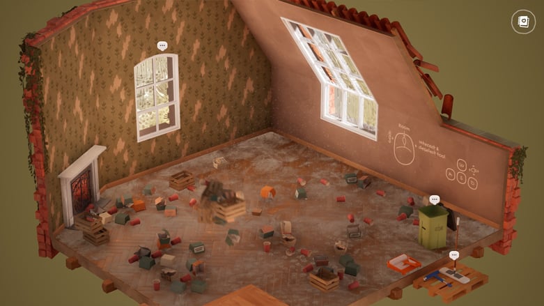 В Hozy вы рассматриваете каждое обветшалое здание с уникальной, угловой перспективы, ремонтируя его комнату за комнатой. Каждое пространство представляет собой список задач – уборка мусора, подметание, удаление половиц и многое другое – чтобы вернуть имуществу жизнь. Хотя конкретные задачи варьируются, вы часто будете красить или убирать, и конечный результат всегда является приятным преображением.