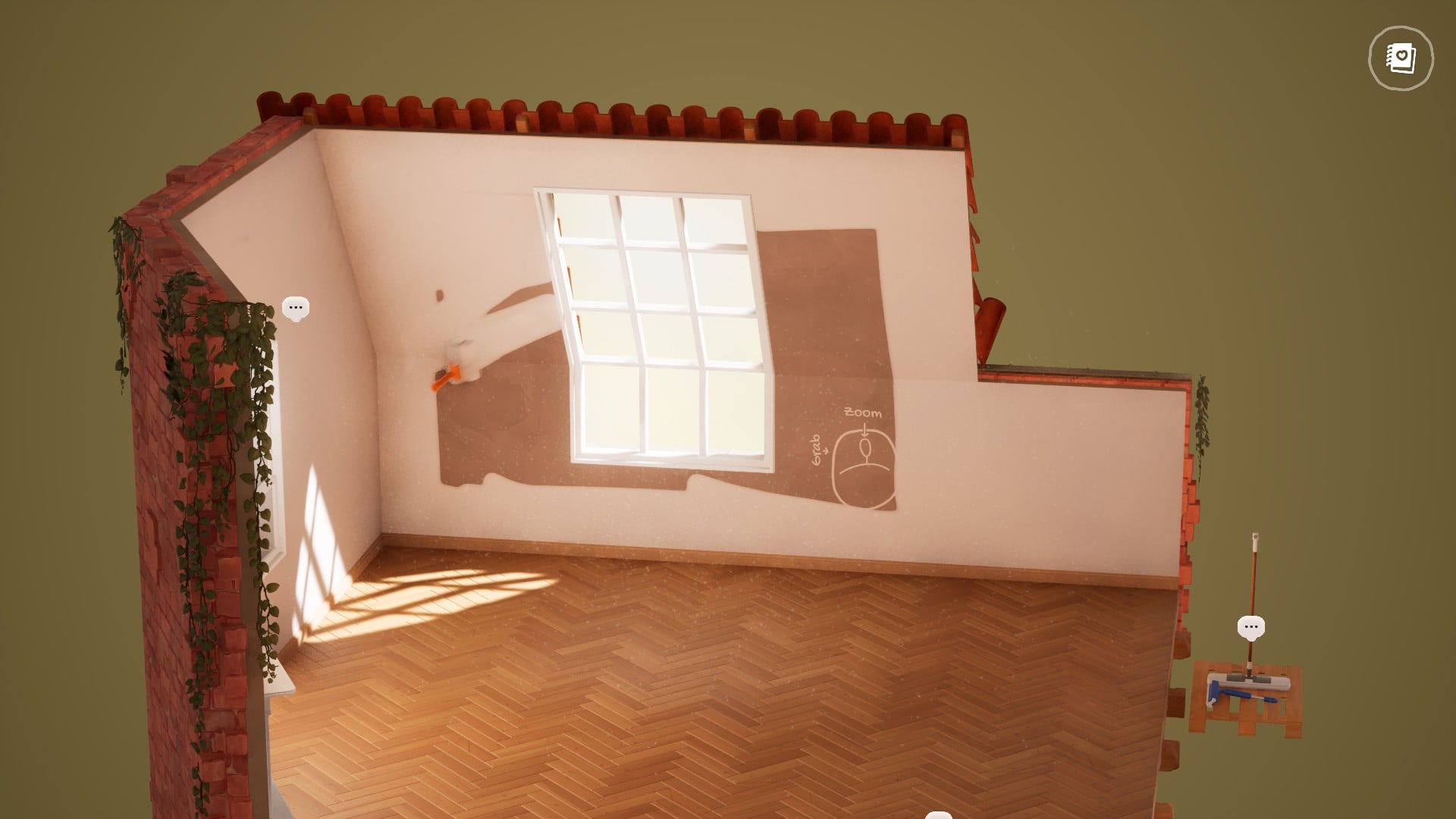 Управление мышью в игре может быть немного сложным, что приводит к неточным и скользким движениям, особенно при попытке покраски. Я часто замечал, что валик для краски перелетал туда, куда я не хотел, почти сопротивляясь моим движениям и смещаясь влево или вправо, что портило мои попытки создать чистые, прямые линии. Хотя это и не является серьезной проблемой, эти небольшие проблемы с управлением могут быть раздражающими и отвлекать от приятных ощущений, которых стремится достичь игра, потому что инструменты не всегда реагируют так, как вы ожидаете.