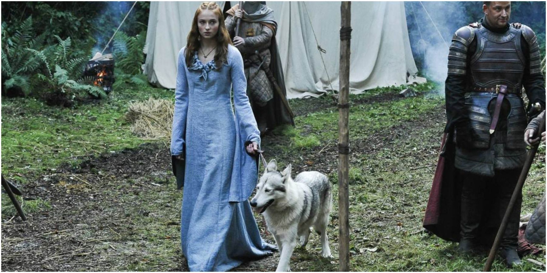 В «Игре престолов» Санса на раннем этапе отказывается от Леди, своего любимого лютоволка. Вместе с Арьей и их животными они отправляются на юг после того, как Нед принимает предложение Роберта Баратеона на должность Руки. Во время остановки в гостинице «Перекресток» Санса берет Леди на прогулку, а Джоффри просит ее прогуляться по берегу реки. Последующие события существенно меняют судьбу сестер Старк и будущее их питомцев.