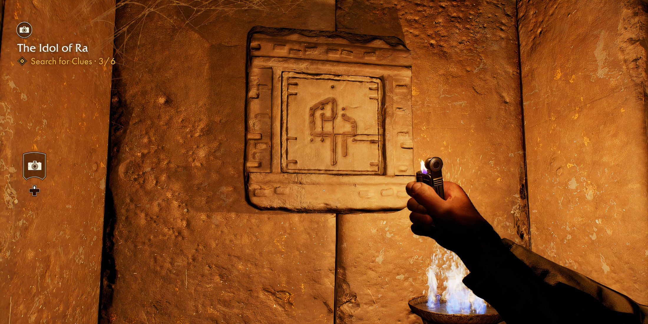 Здесь вам следует оборудовать зажигалку и зажечь масляные чаши, чтобы украсить коридор. Здесь есть две каменные таблички, которые вам следует сфотографировать, прежде чем идти дальше в коридор.