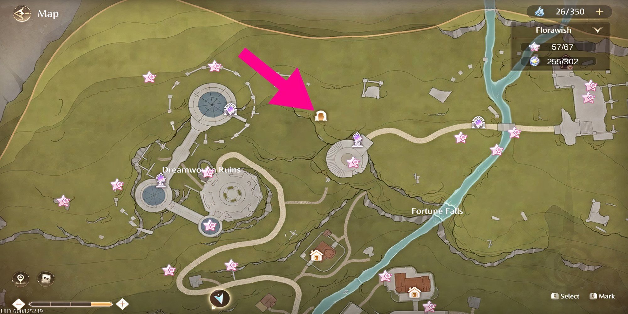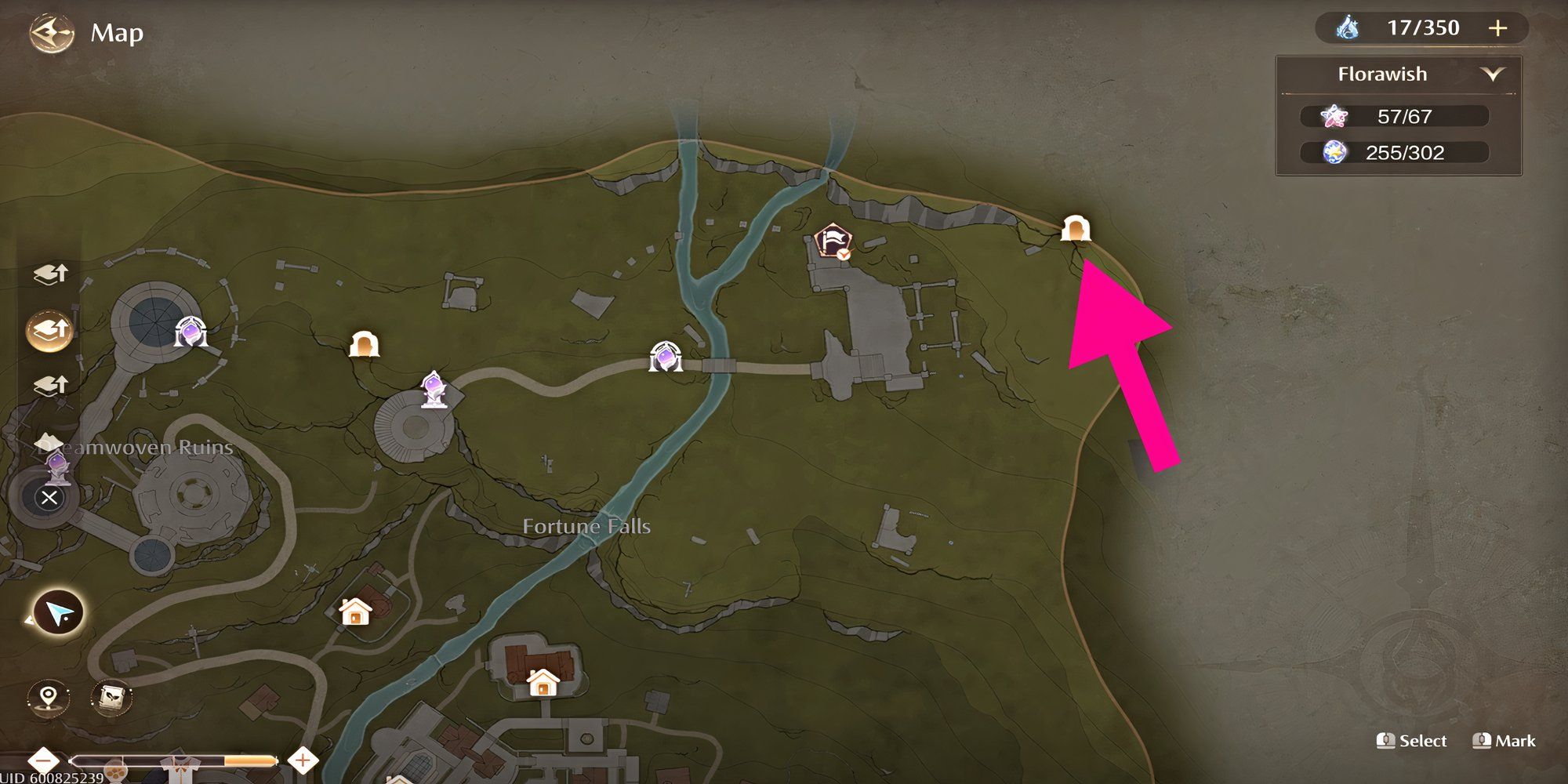 - Расположение Материала роста: Relic Hill Cavern к северо -востоку от Fortune Falls и Florawish