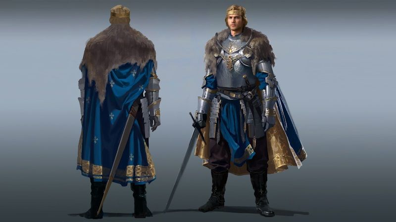 Вместо того, чтобы строго придерживаться исторических фактов о Миямото Мусаси, мы пользовались большей творческой свободой при создании интерпретации короля Артура. Мы использовали его рассказы как основу для более изобретательных образов. Нашей целью было уловить сущность короля Артура из повествований, которые были менее реальными и более мифическими или загадочными. Например, мы сосредоточились на таких описательных словах, как «лидер рыцарства», «храбрый», «праведный» и «красивый». Учитывая, что его часто изображают всадником-воином, мы наделили его крепким, мускулистым торсом, скромной, но величественной короной и, разумеется, Экскалибуром. Эти аспекты послужили нашей первоначальной основой для дизайна. Поскольку многие из наших источников о короле Артуре содержали элемент магии, наша окончательная версия его персонажа несет в себе несколько более причудливую атмосферу по сравнению с другими персонажами.