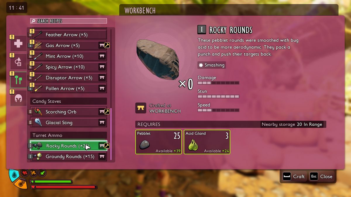Чтобы упростить задачу, вам будет удобнее использовать Rocky Round для крафта, потому что каждый процесс изготовления приносит 25 Rocky Rounds при комбинации из 25 пеббл и 3 кислоты Gland. Получив и турель Acorn Turret, и эти раунды, разместите турель на более высоком уровне для наилучшего эффекта. Если вы еще не построили второй этаж, возможно, стоит начать это делать.