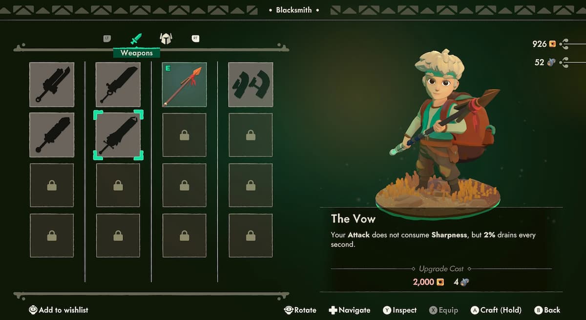 Итак, закончив здесь, я получил свиток! Он открывает новое оружие под названием The Vow, которое потрясающее. Мне нужно вернуться к кузнецу в центральной зоне, чтобы его изготовить, но я рад заполучить его!