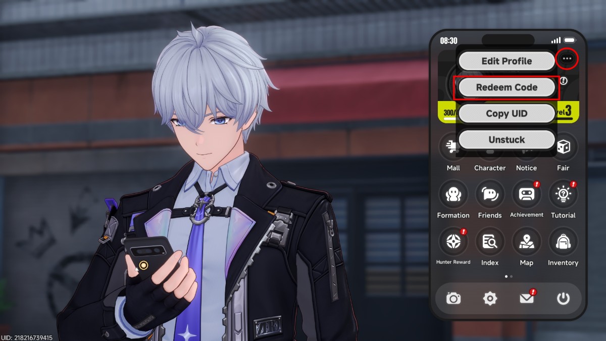 Чтобы использовать код, нажмите клавишу «ESC», чтобы открыть ваш телефон. Затем найдите кнопку «…» в правом верхнем углу, под значком батареи, и нажмите на неё. Это откроет опцию для активации вашего кода.