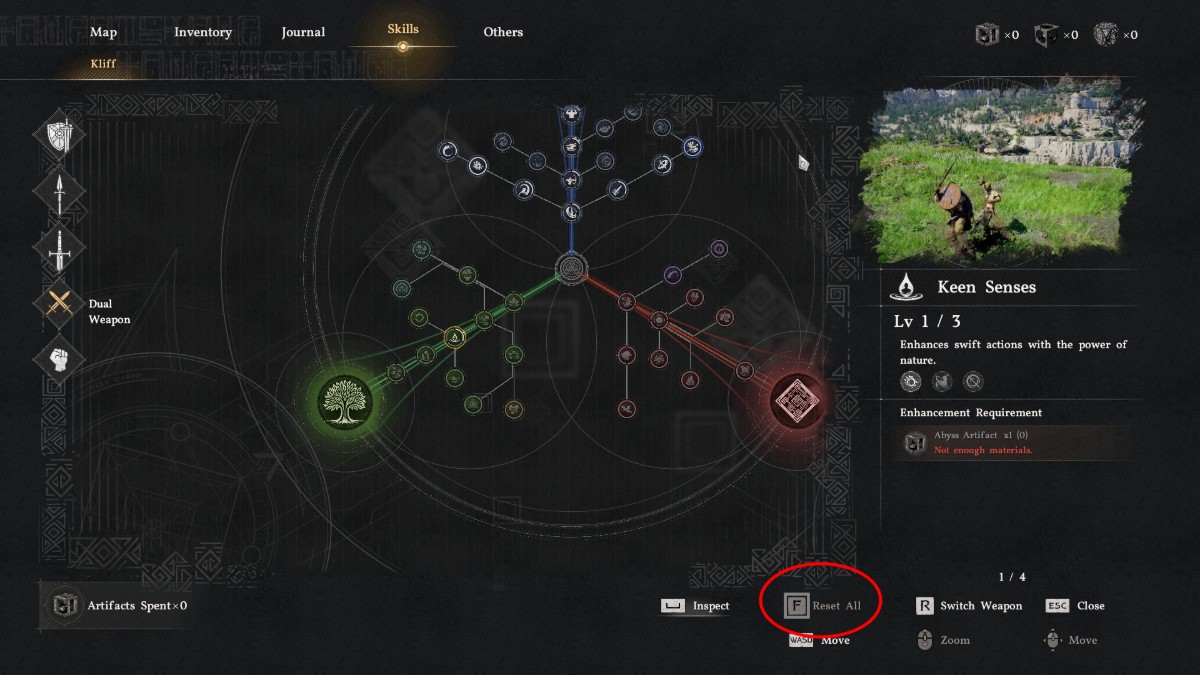 Сброс ваших навыков не бесплатен. Он требует Артефакт Забытой Бездны каждый раз, и вы получаете только один в начале сюжетной линии. После этого получение другого артефакта займет время, поэтому тщательно подумайте, прежде чем выбирать, на каких навыках сосредоточиться.