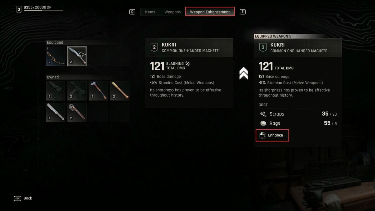 Помни, оружие можно улучшить лишь ограниченное количество раз. Также не стоит тратить ресурсы на улучшение более слабого оружия.