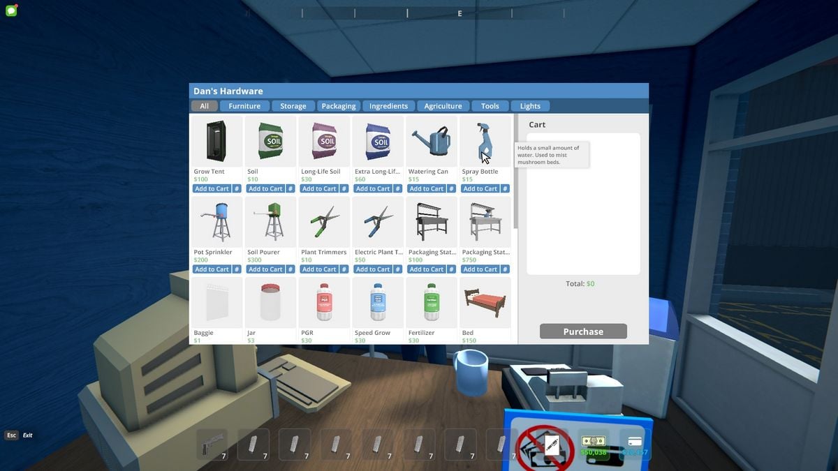 Если у вас не хватает денег, начните с покупки предметов в магазине Оскара, сосредоточившись на Mushroom Spawn Station и Mushroom Box. После этого приобретите распылитель и кондиционер, и продолжайте использовать свои существующие Trimmers.