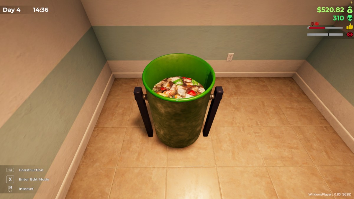 Как только вы разблокируете мусорный бак, вы можете поставить его в свой магазин. Клиенты затем автоматически будут выбрасывать свой мусор в него. Когда мусорный бак заполнится, вы можете очистить его, щелкнув правой кнопкой мыши, выбрав мусорный мешок и поместив мешок в переработчик.