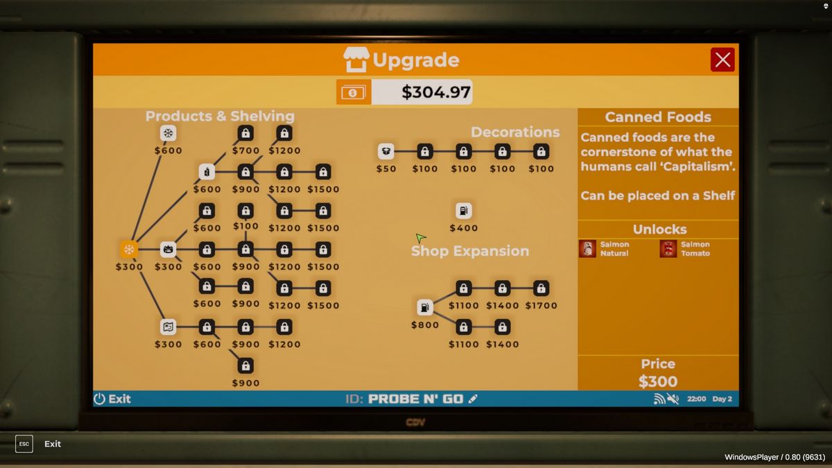 Наименее дорогостоящее улучшение – это украшение, стоимостью $50, которое открывает доступ к банкомату и бумбоксу. Однако, улучшение напитков, которое находится в разделе Products & Shelving, является наиболее полезным. Оно добавляет три новых напитка, которые вы можете продавать, быстро увеличивая ваши доходы. Завершение покупки в магазине должно немедленно завершить текущее задание.