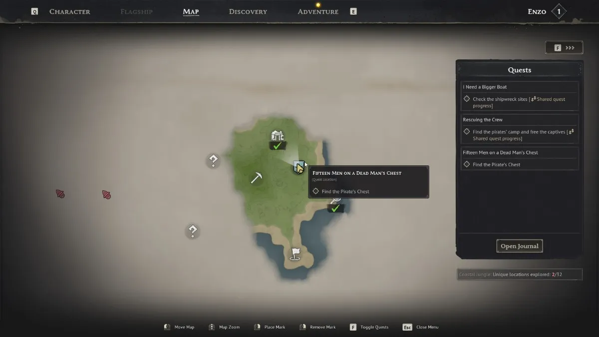 Поскольку Windrose создает свой игровой мир случайным образом, ваша карта может немного отличаться каждый раз, когда вы играете. Но не волнуйтесь, побочное задание всегда будет доступно и расположено на первом острове, на котором вы начинаете.