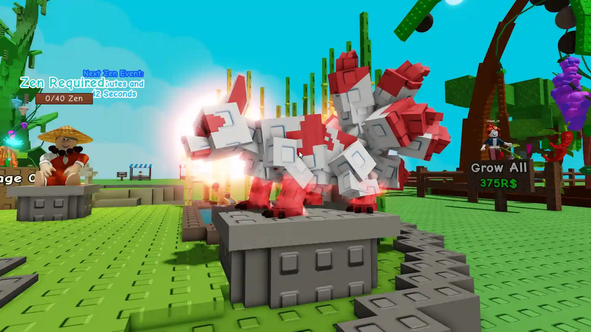 Сначала передайте всю мирную флору торговцу возле знака ‘Торговля Чи’, и он выплатит вам Чи в качестве оплаты. Затем воспользуйтесь тем же торговцем для входа в магазин Сокровищ, где вы сможете купить Яйцо Дзена за 30 Чи.