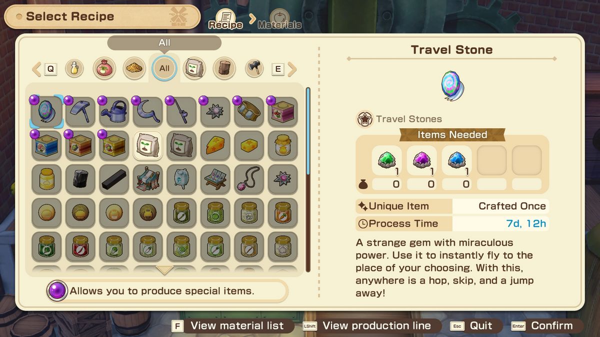 Один из уникальных предметов, создаваемых внутри жёлтой мельницы, известен как Камень Путешественника. Чтобы получить этот предмет, сначала нужно добыть Фиолетовый Мистический Камень в лавке Фелипе, а затем использовать его для активации жёлтой мельницы. Это действие откроет ряд новых и скрытых возможностей для создания, одним из которых является Камень Путешественника.